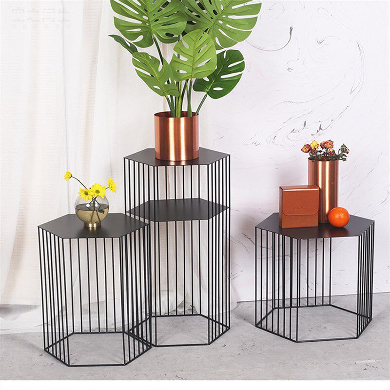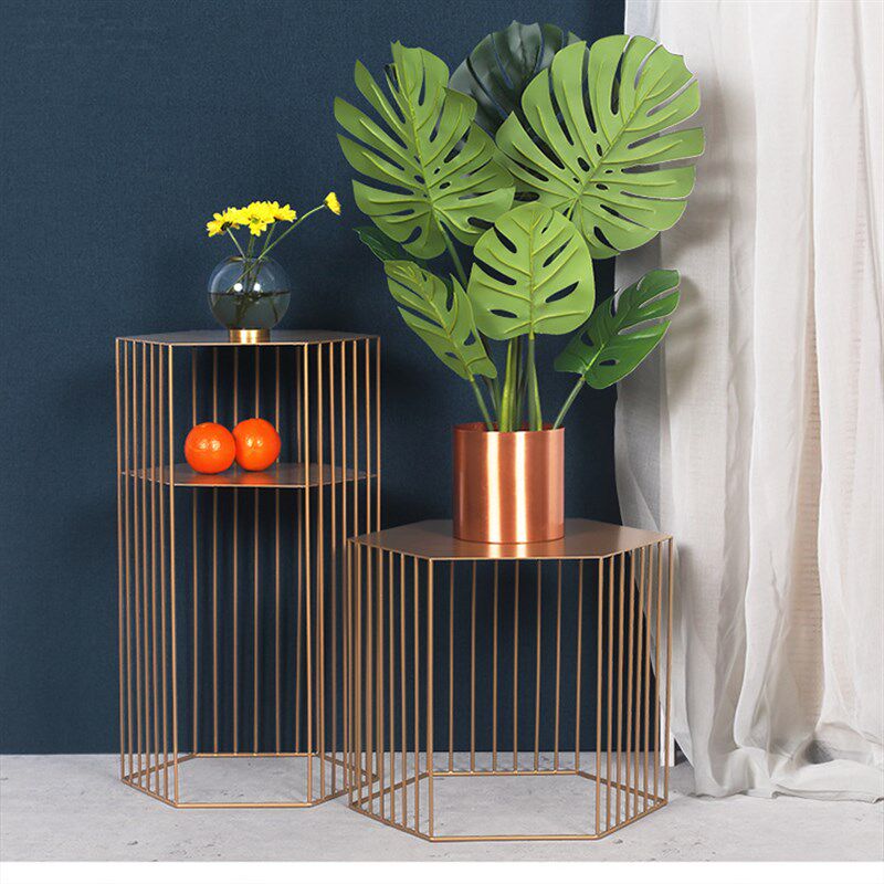 铁艺茶几角几创意桌子简约现金色沙发边几轻奢六角花架装饰
