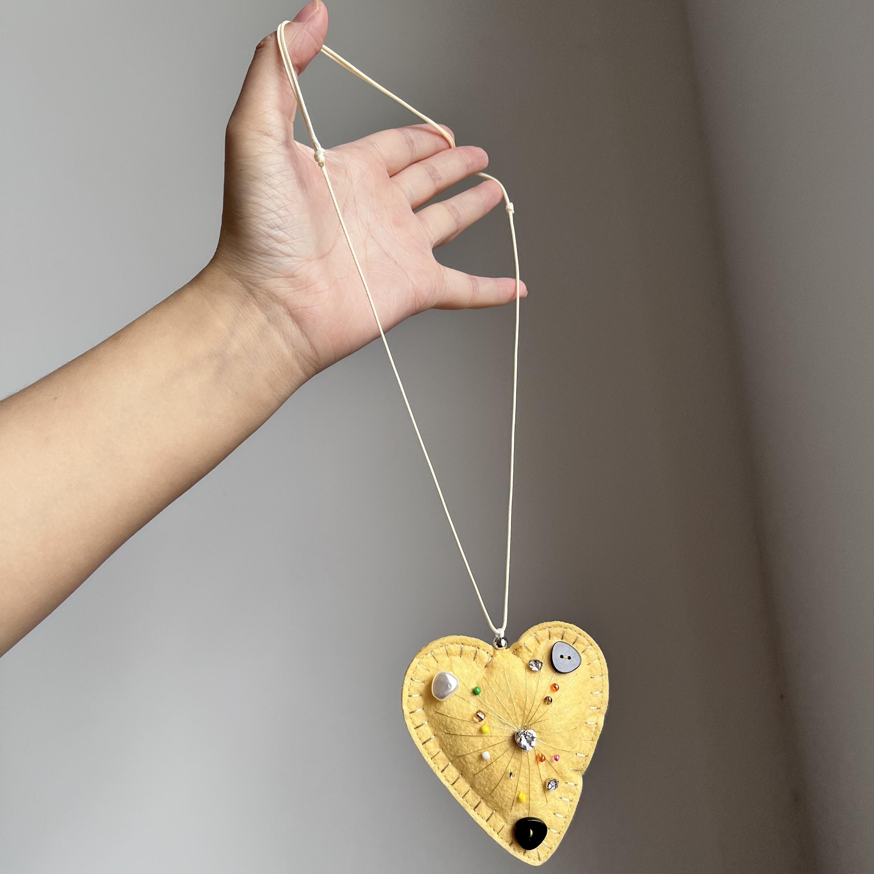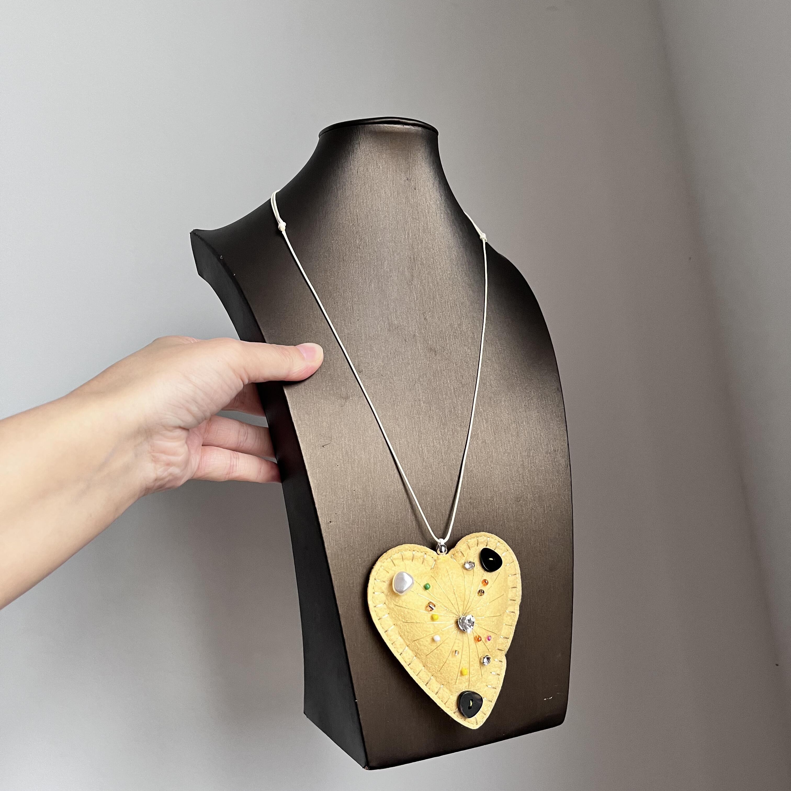 复古黄色毛毡爱心项链女秋冬独特气质颈链小众设计大气毛衣链配饰