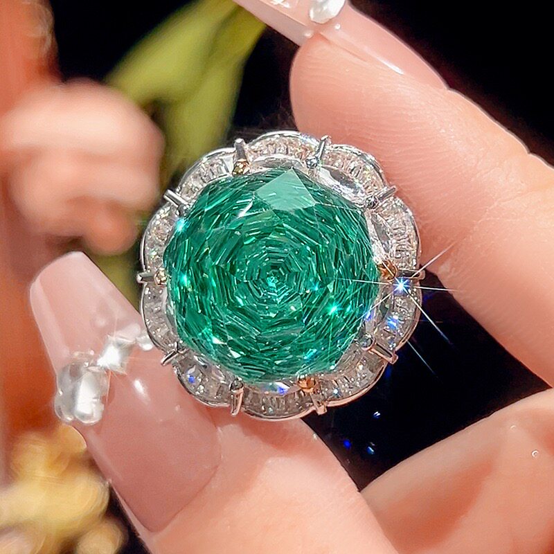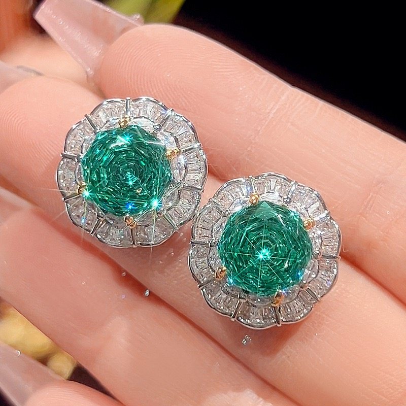 新款铜镀银仿彩宝镶钻吊坠女项链玫瑰切仿绿碧玺满钻耳钉开口戒指