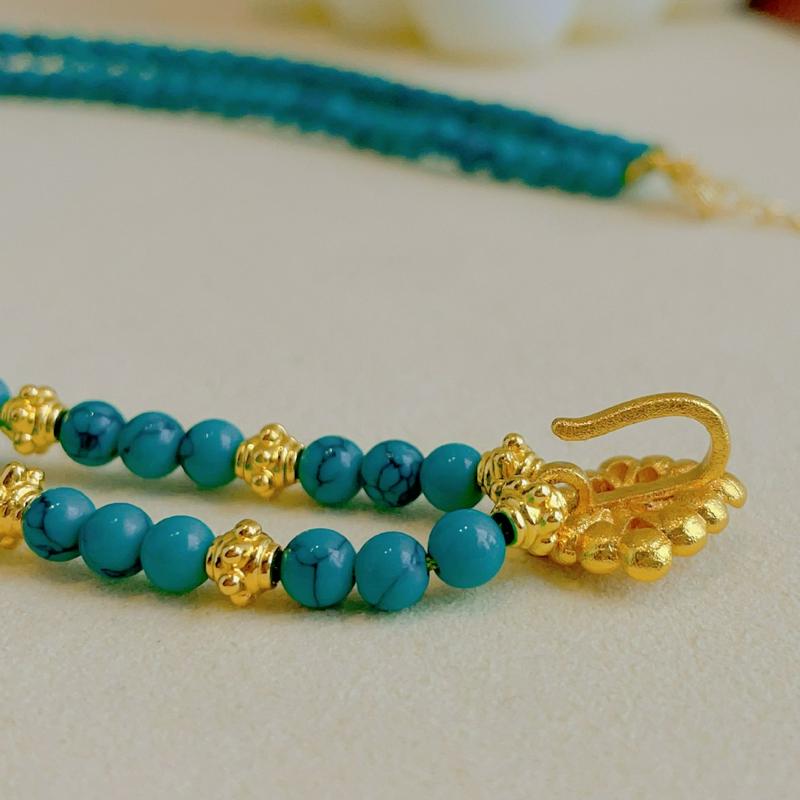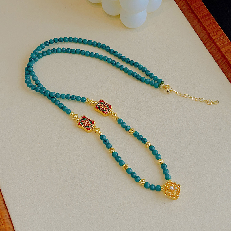 新款民族风配唐卡链条项链仿绿松石黄财神吊坠项链多巴胺配饰品女