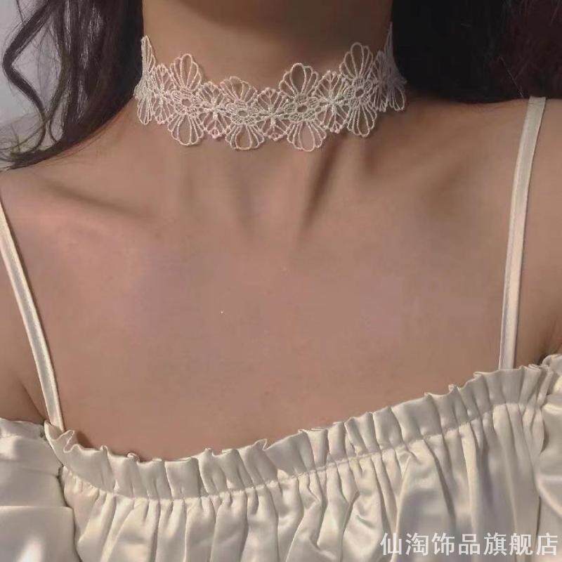 少女choker颈环锁骨链暗黑系挡疤痕颈链系带脖子配饰白色蕾丝项圈