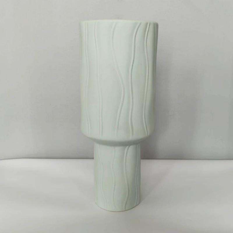 北欧陶瓷高脚花瓶白色书房客厅插花餐桌装饰花器设计师样板房软装
