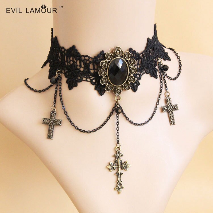 暗黑项链女锁骨链颈链项圈lolita朋克哥特复古巴洛克原宿花嫁法式