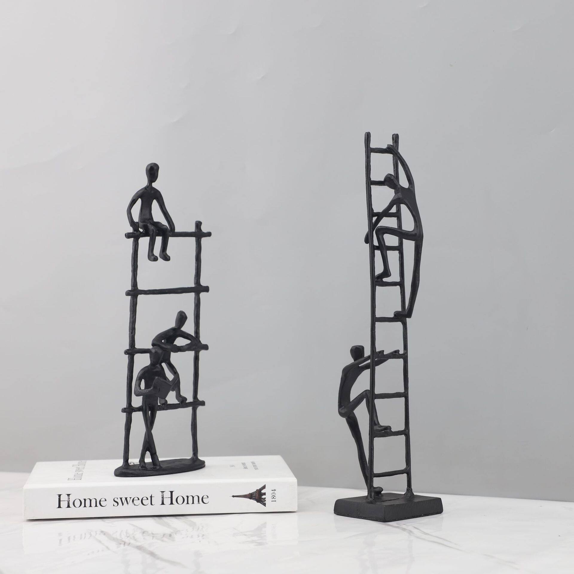 简约现代金属黑色攀登人物摆件样板房售楼部家居客厅创意软装饰品