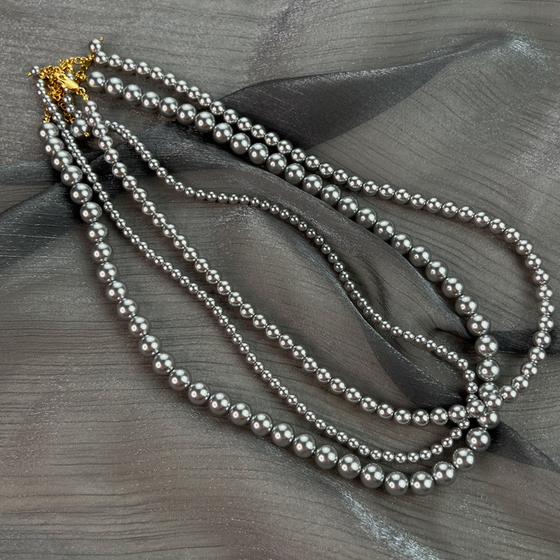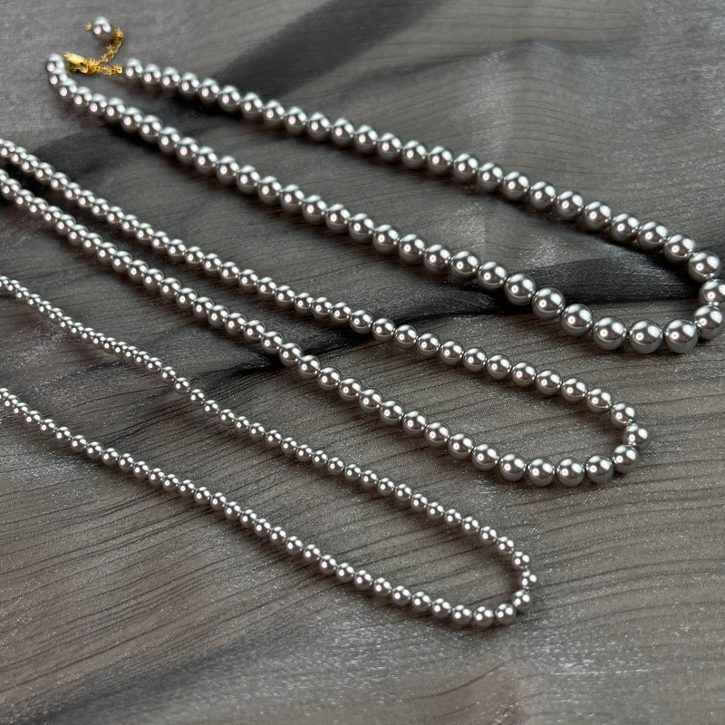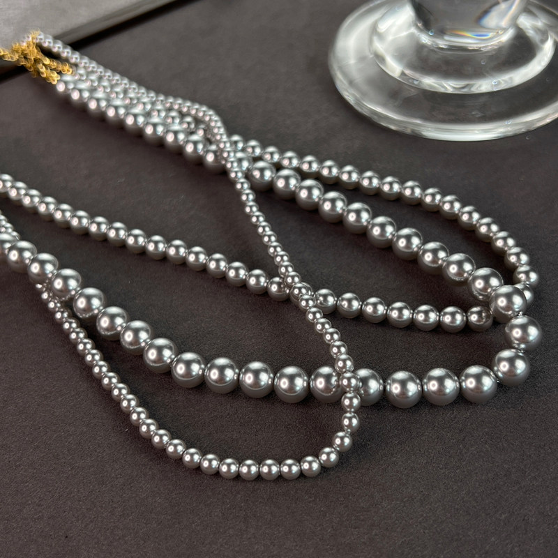 强光正圆银灰色珍珠项链轻奢风小众高级感叠戴锁骨颈链施家真多麻