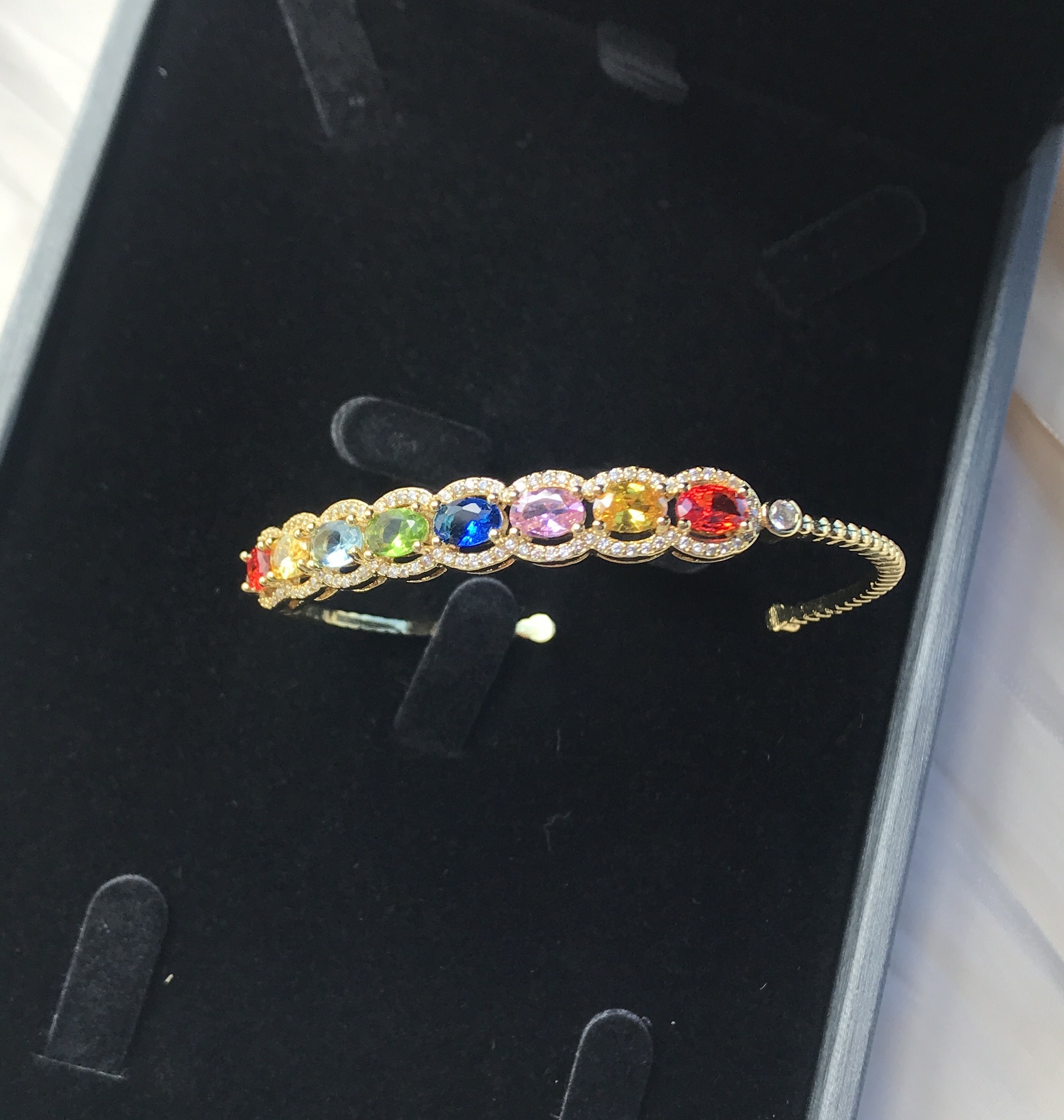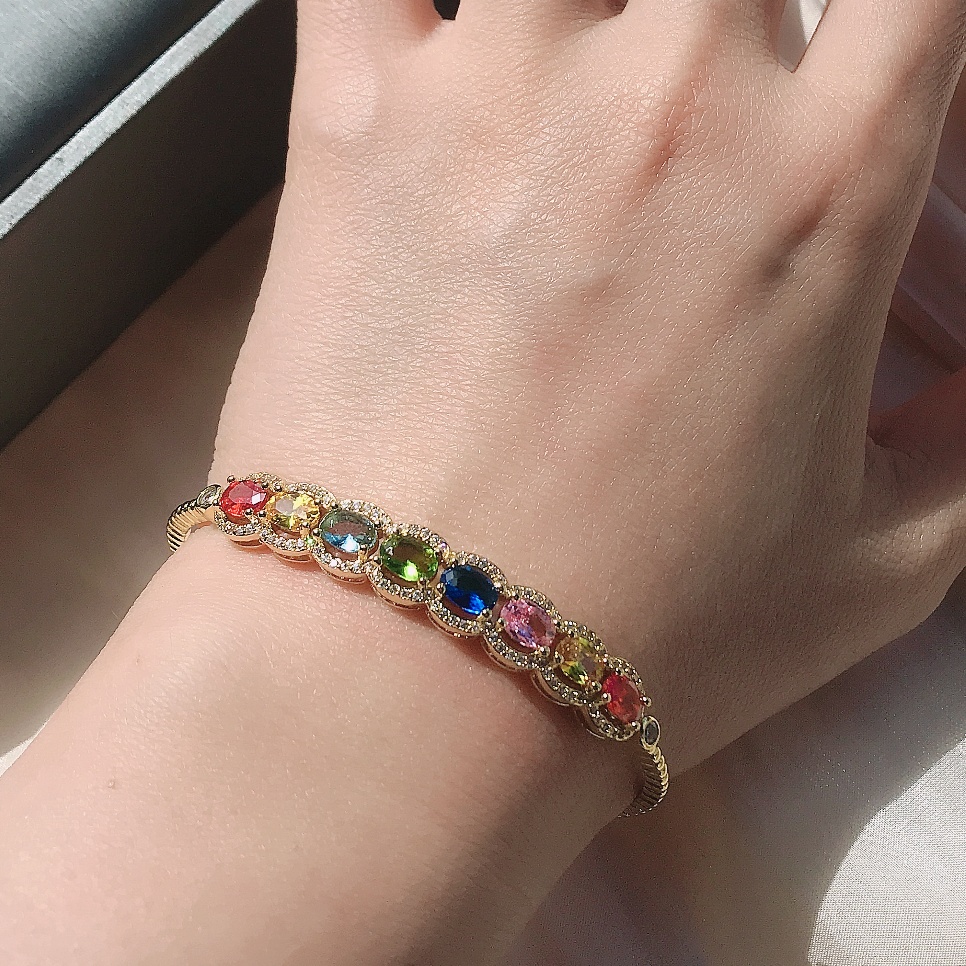 满钻仿莫桑七彩虹系列 碧玺彩宝手环超闪手镯女 镀欧美玫瑰金手链