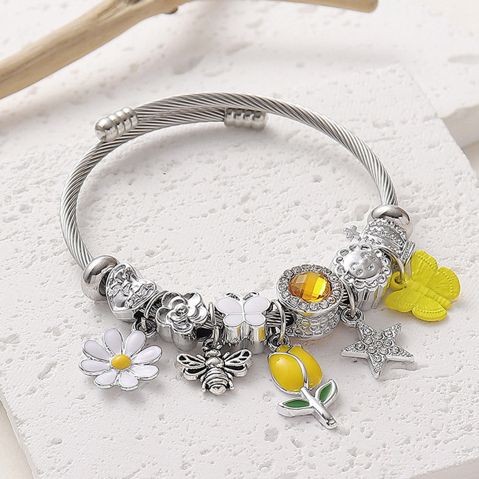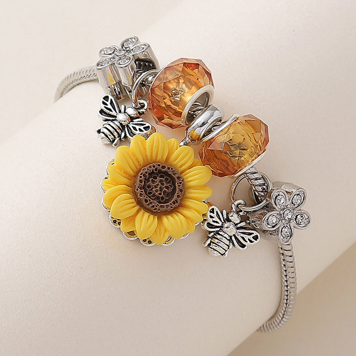 彩衣阁手链黄色蜜蜂花花向日葵甜美吊坠diy手镯学生流行时尚礼物