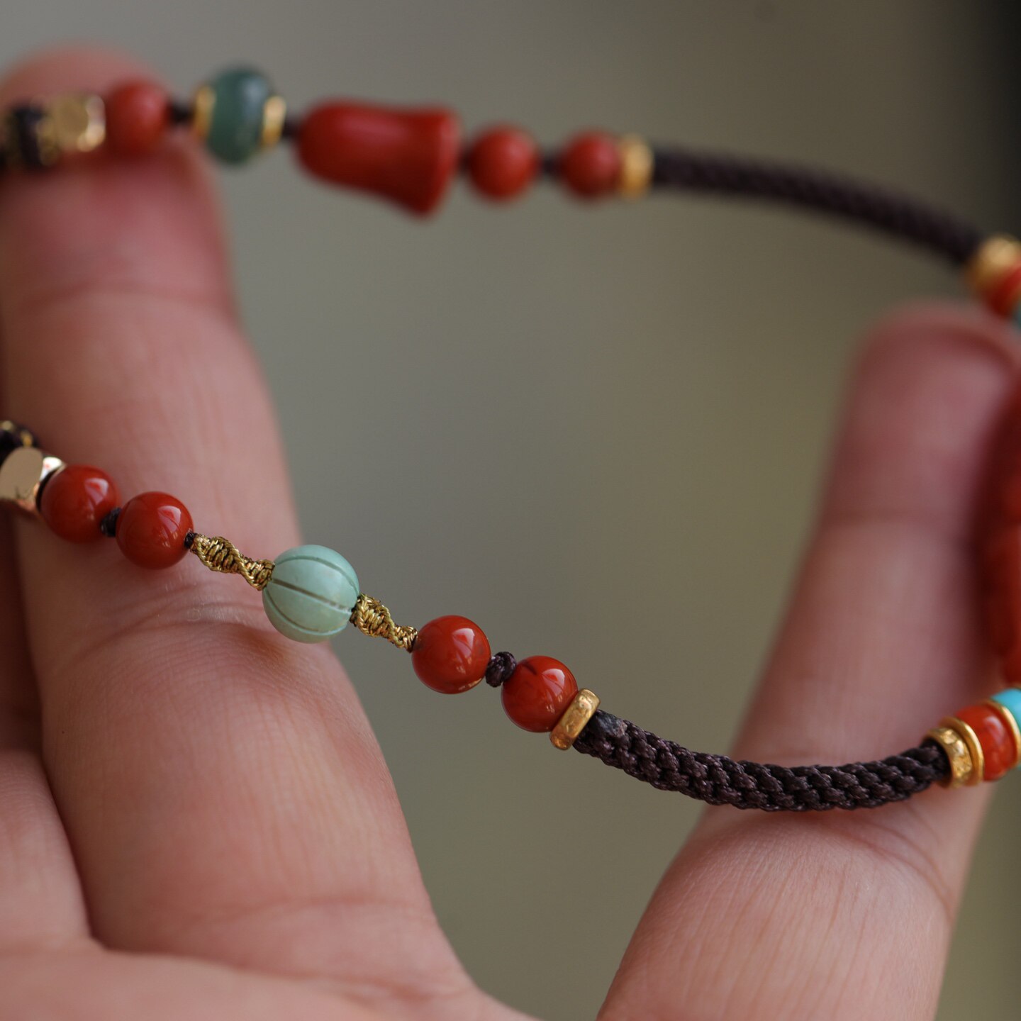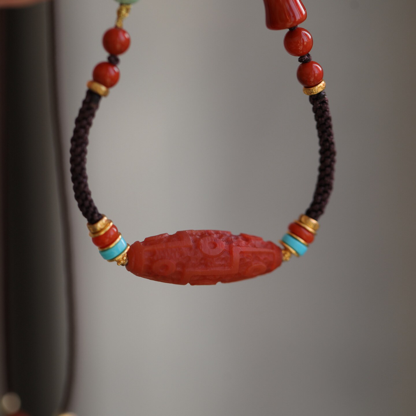 中国风天然南红精雕天珠项链配手工绳长链松石南红配珠南红三通63