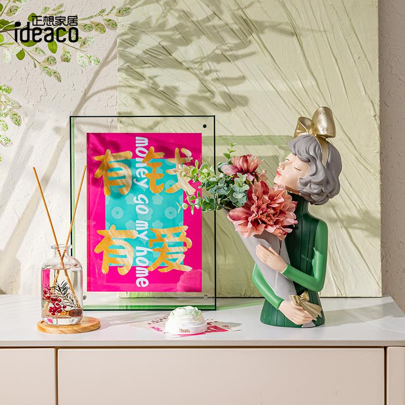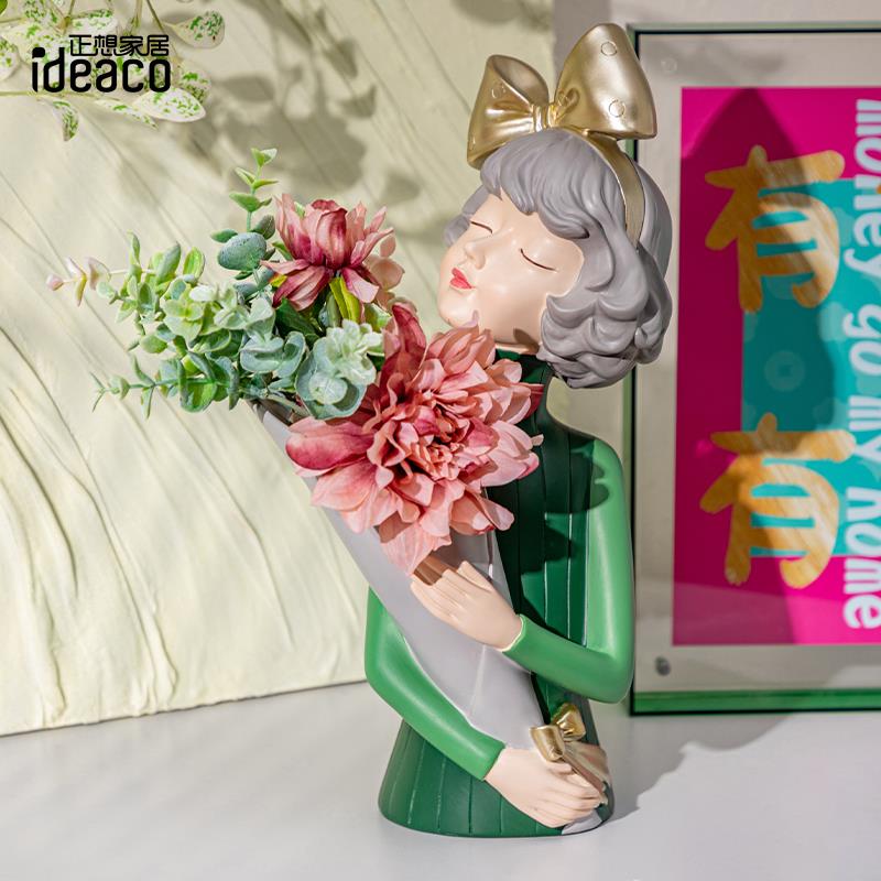 ide感aco正想高级家居捧花女孩摆件轻奢花瓶装饰品居电视柜乔迁新