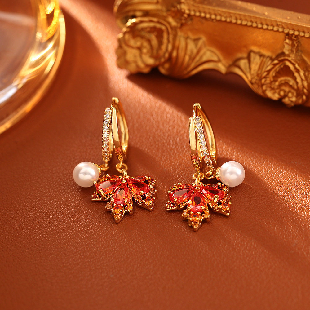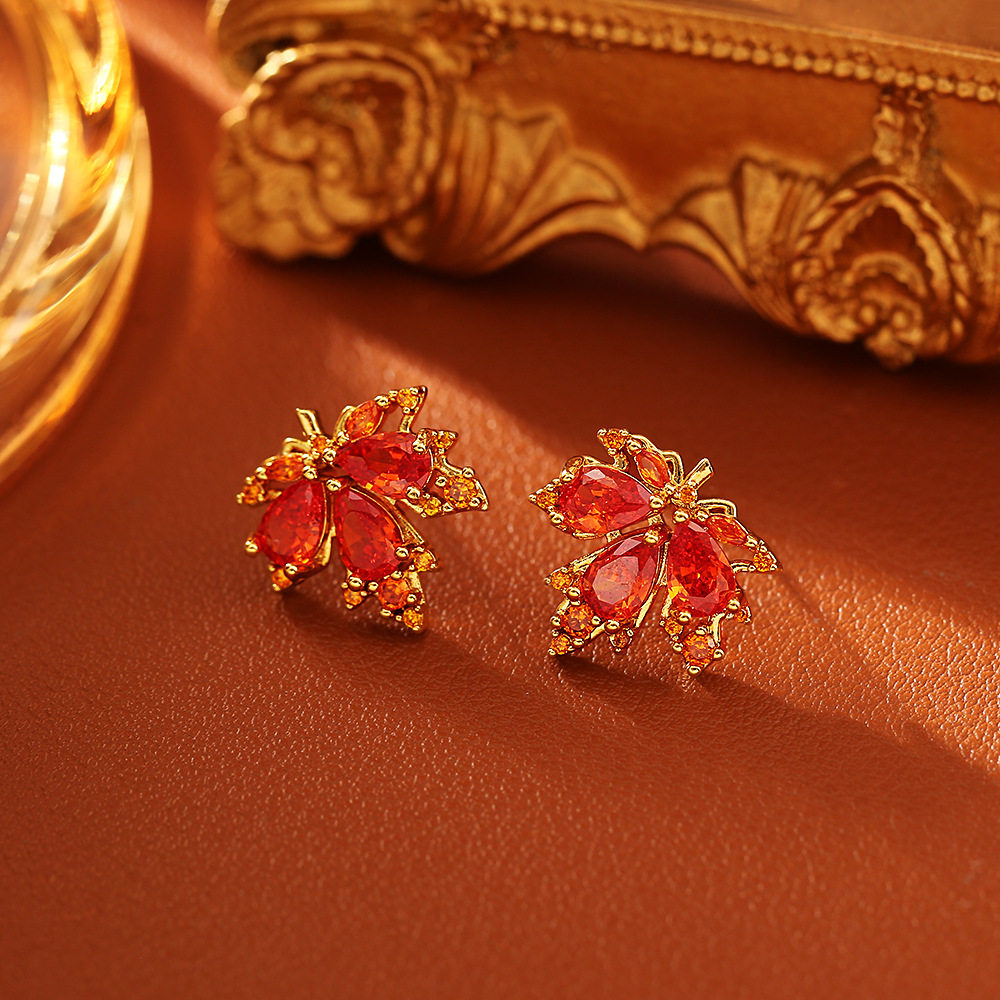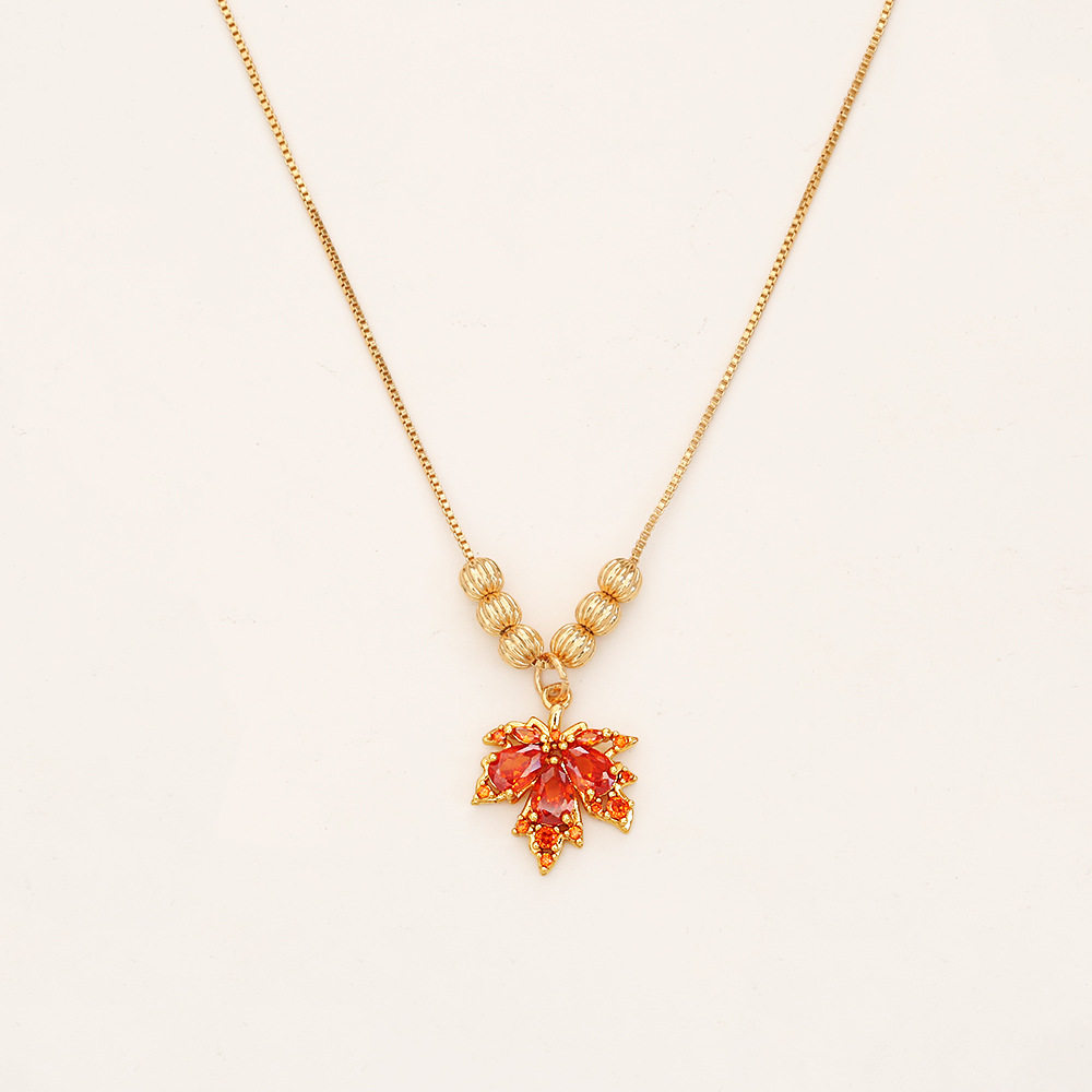 爆款红色枫叶锆石项链感时尚精致优雅气质锁骨链仙女风耳饰潮