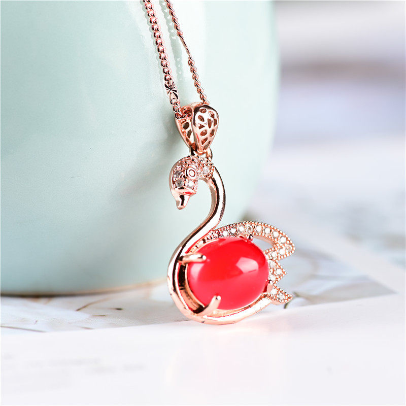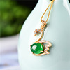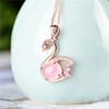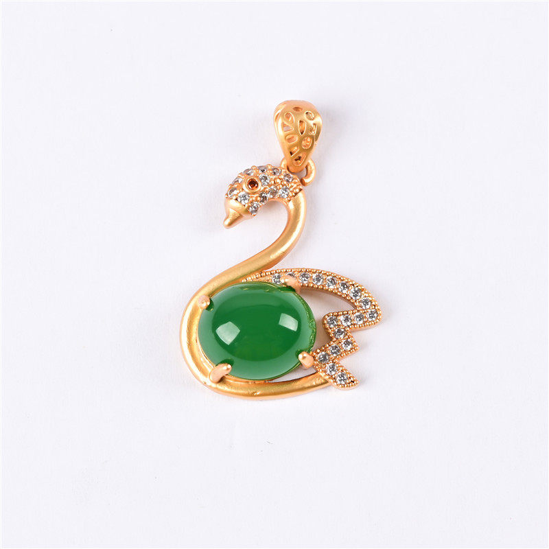 正品绿粉红色玉髓小天鹅吊坠 网红款925银镶嵌黑天鹅女款项链颈饰