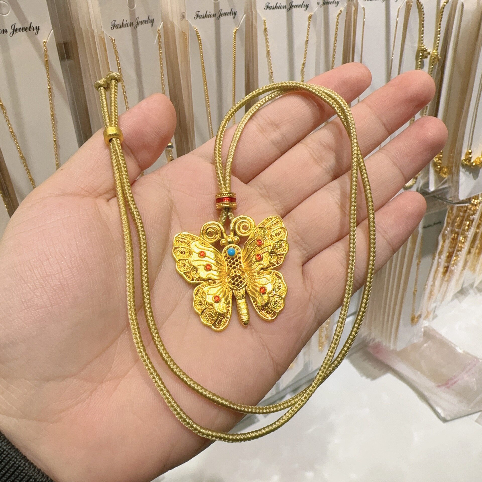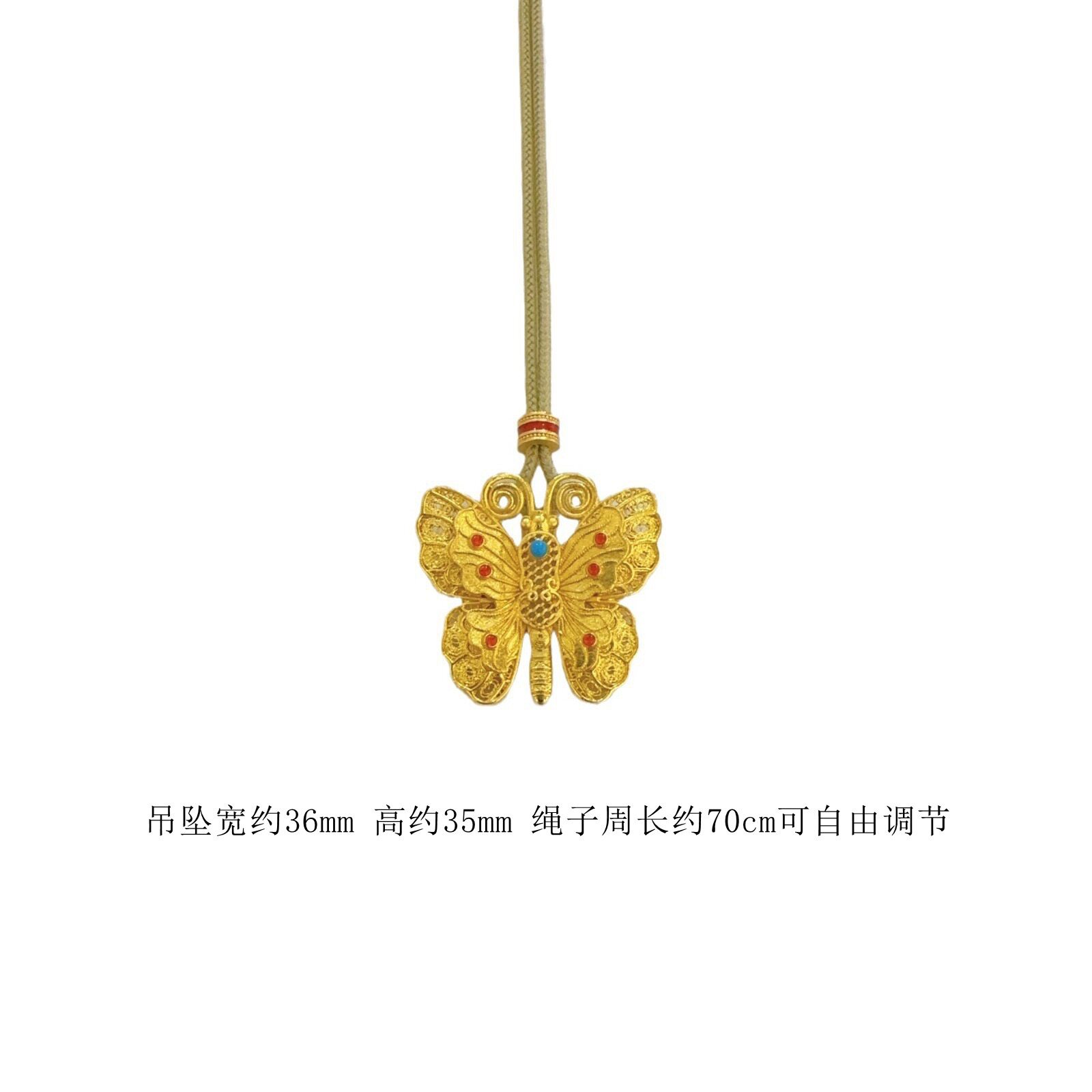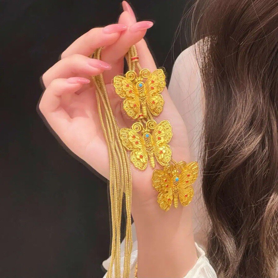 金包银点钻蝴蝶项链吊坠黄色时尚高级复古配饰品送女友