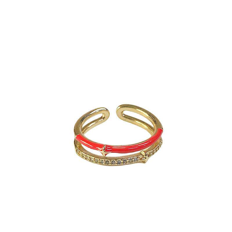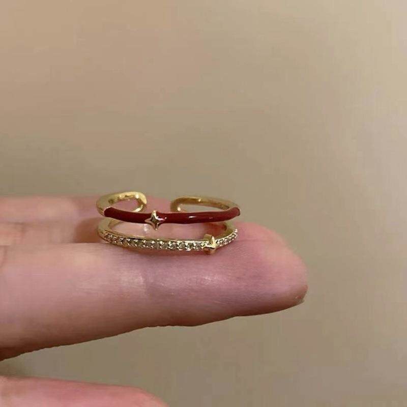 2024新款新年喜庆红色星星滴釉戒指女小众食指戒复古港风开口指环