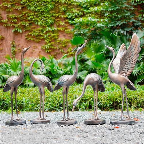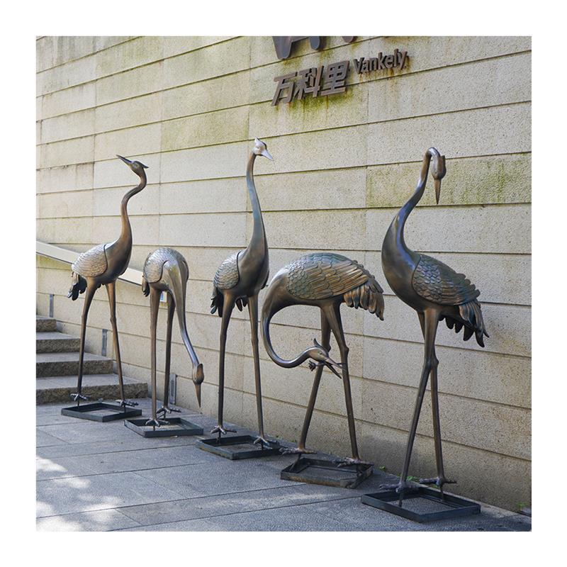 现代仿铜仙鹤雕塑户外大型玻璃钢模型草坪园林水池丹顶鹤景观摆件