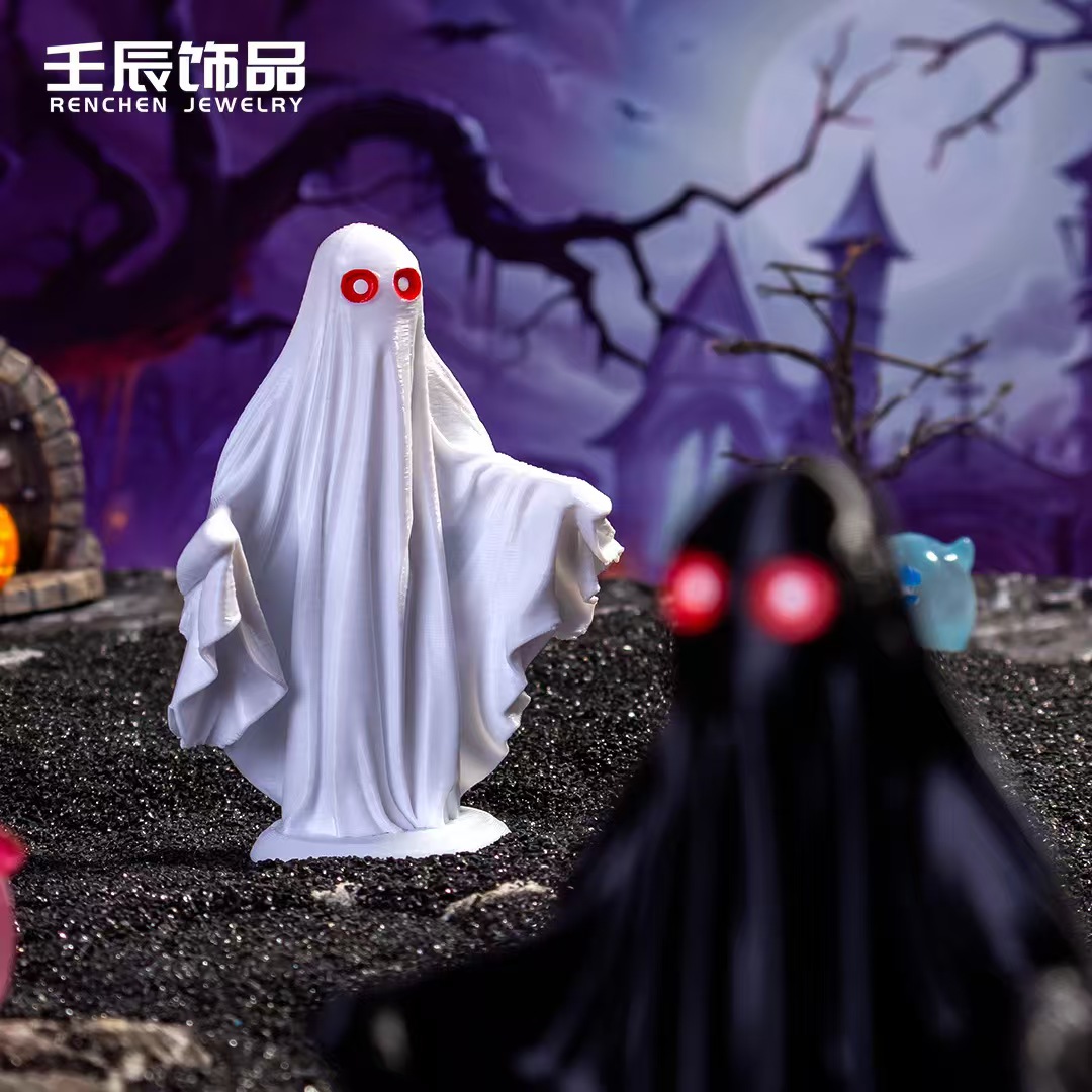 跨境万圣节白色幽灵装饰品树脂工艺品小配件桌面车载办公室小摆件