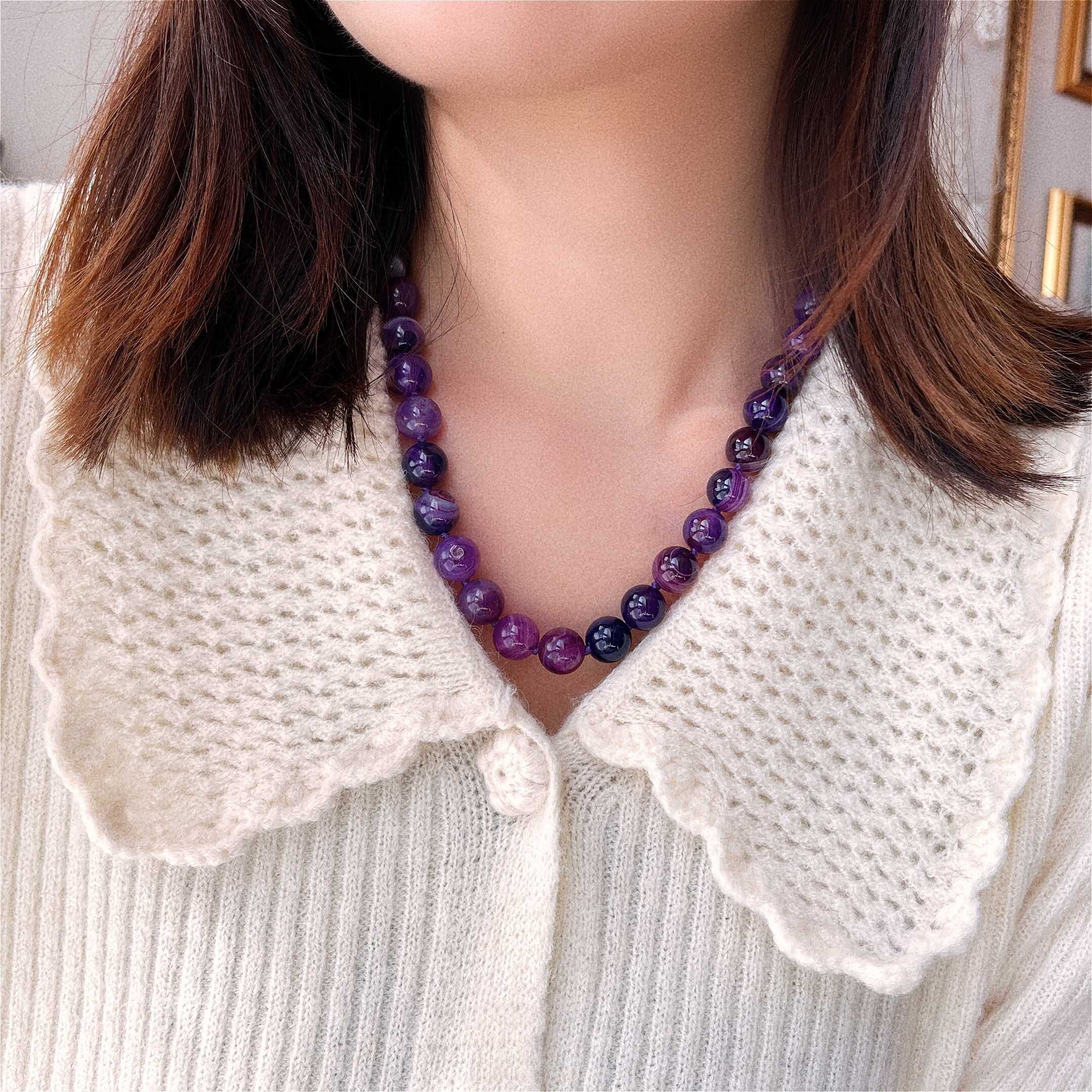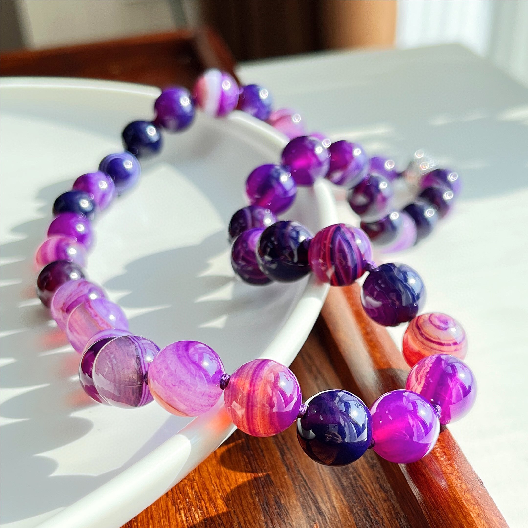 高品质12mm舒俱来色天然玉髓项链小众紫色神秘锁骨珠链女玛瑙项链