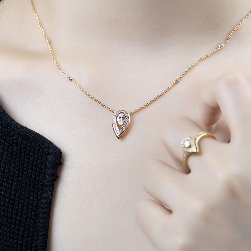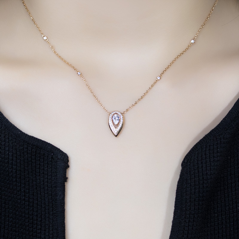 【自营】leqiyuan满钻水滴项链女18K轻奢小众法式原创设计感项链