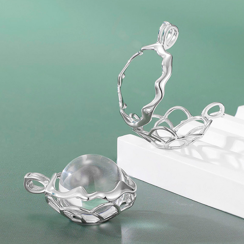 跨境新款S925纯银笼子吊坠女小众设计盒子精油项坠DIY空托配件