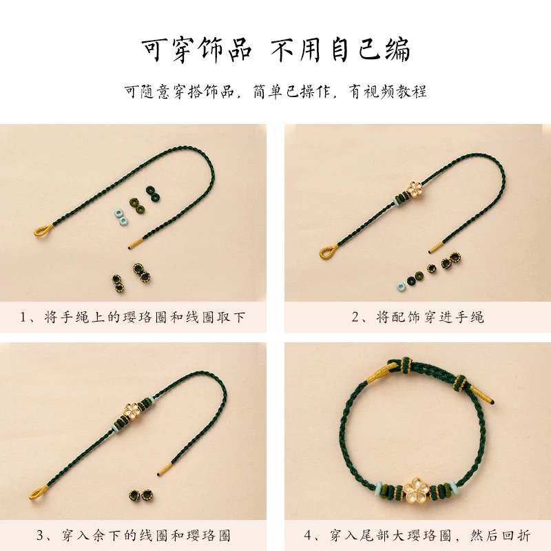 2mm细款红手绳手工编织半成品可穿转运珠黄金本命年儿童手链男女