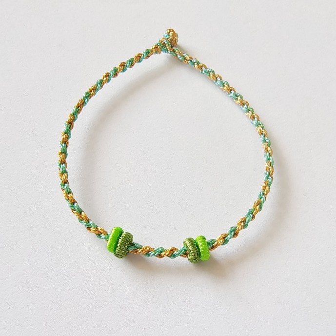 2mm手工编带固定圈可穿珠18K金扣红绳手链14K金扣幻彩金线脚绳
