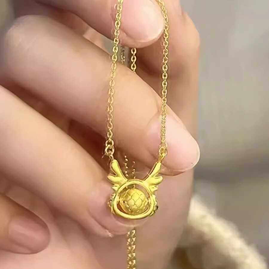 新款24K黄金生肖龙年转运项链小龙珠吊坠本命年999金色套链气质女