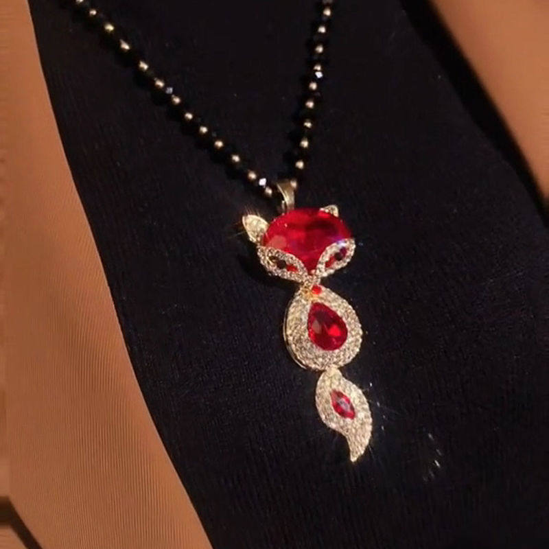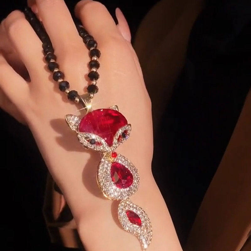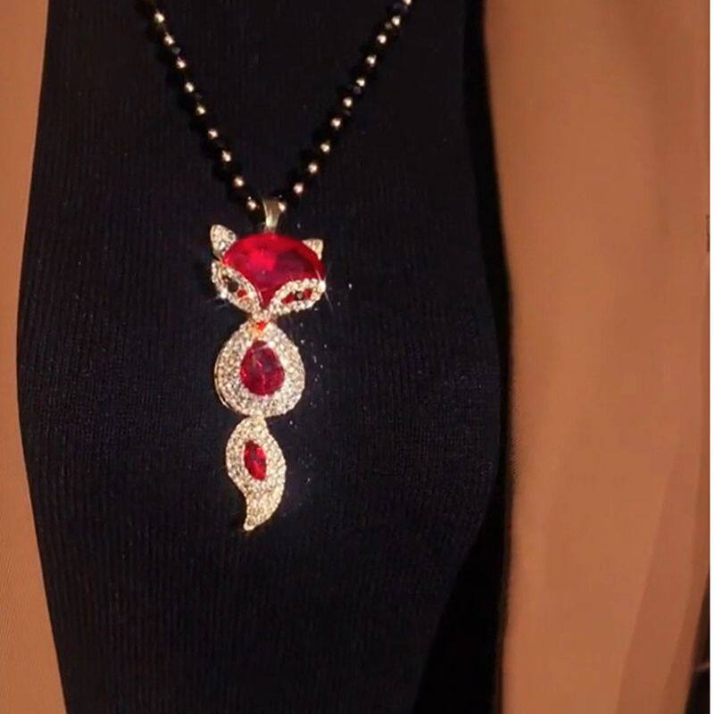 吉祥红色狐狸项链女精致时尚毛衣链衣服配饰吊坠秋冬新款气质百搭