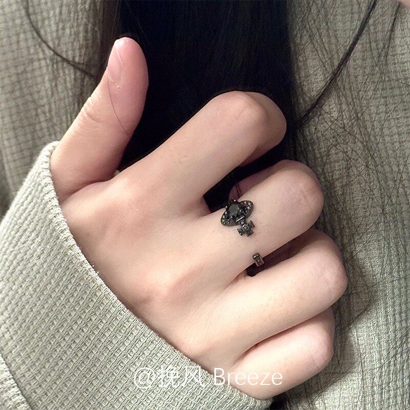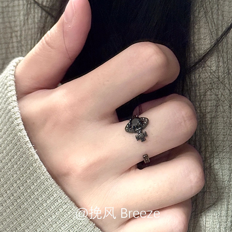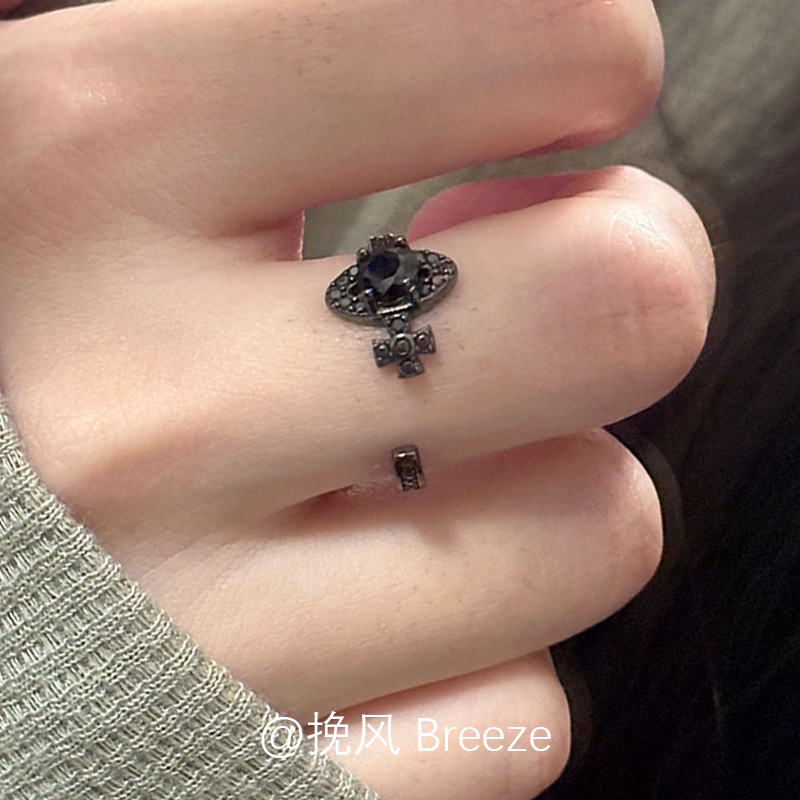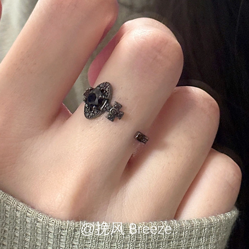 「乌黑亮丽」黑尖晶独特戒指稀奇古怪的食指戒女士重工冷淡风尾戒
