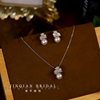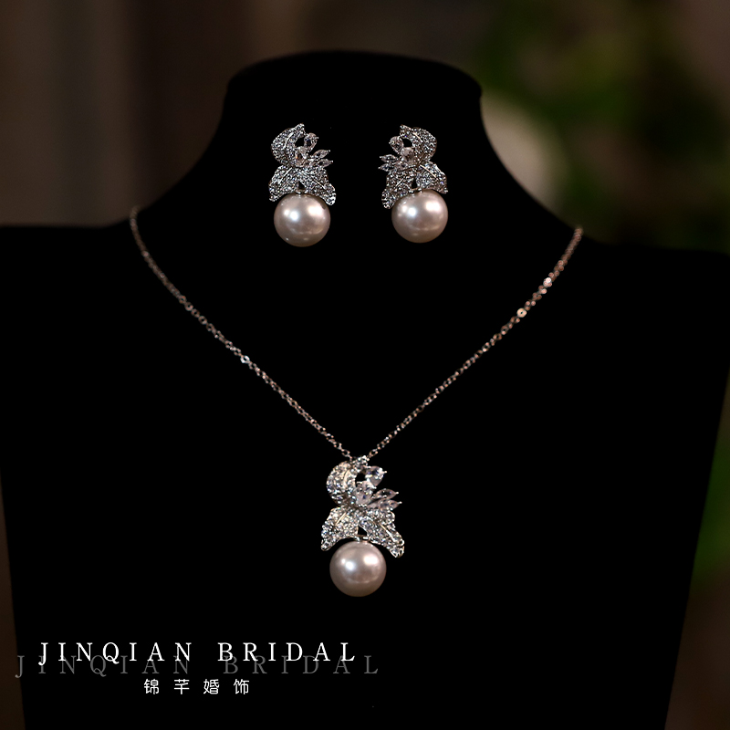 韩式甜美轻奢满钻微镶锆石花朵珍珠项链耳环新娘伴娘礼服婚纱配饰