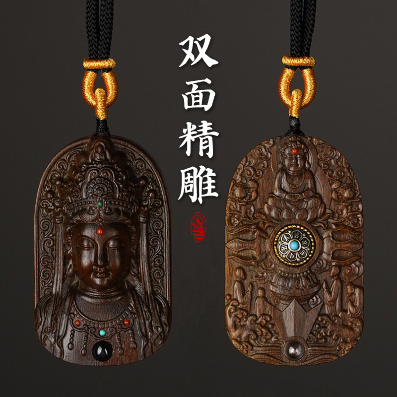 天然正宗阿根廷绿檀木观音菩萨吊坠守护平安牌佛牌挂件复古男女款