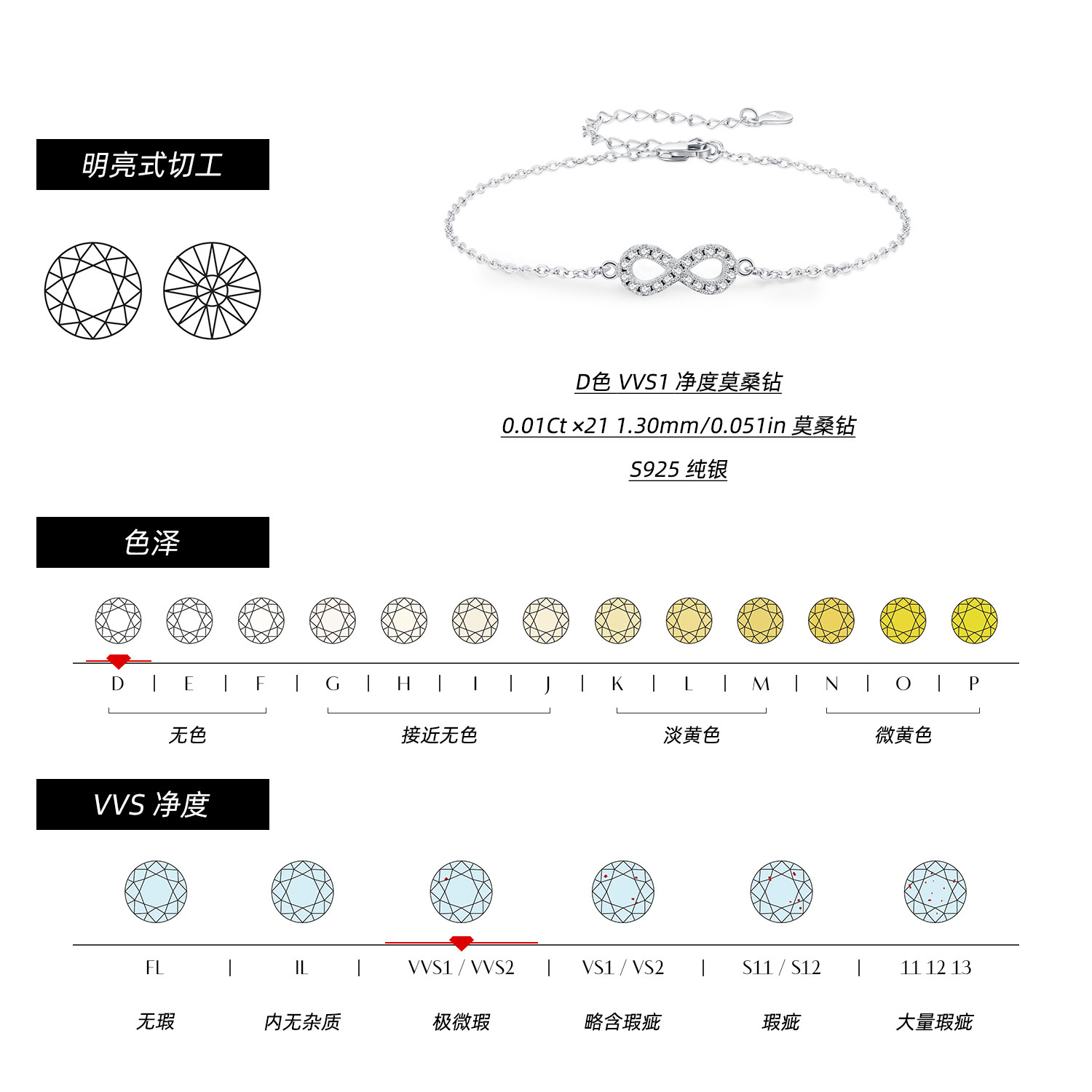 MODIAN摩典莫桑钻S925纯银莫比乌斯手链女轻奢精致浪漫情侣礼物