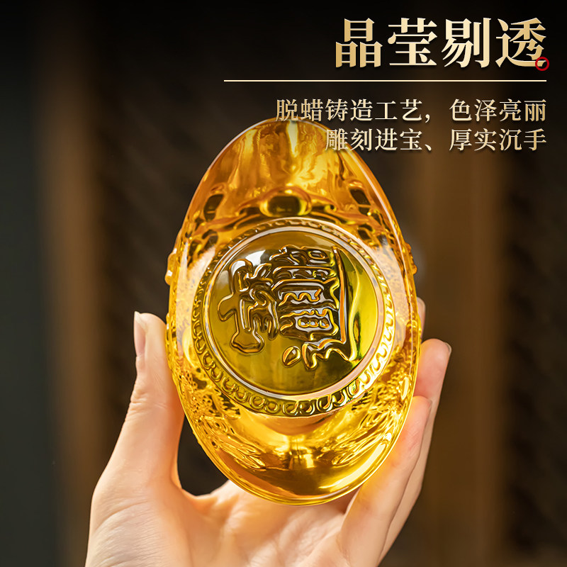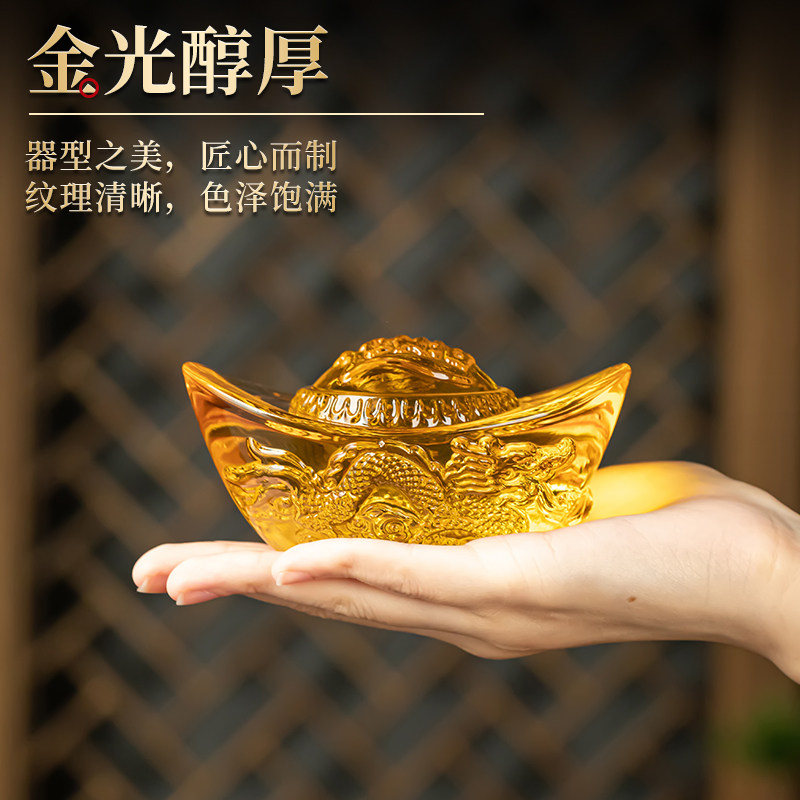 水晶龙纹元宝家居饰品摆件聚宝盆乔迁送礼结婚转运开业手把件精致
