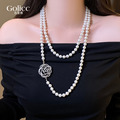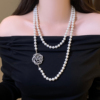 双层黑色微镶山茶花朵长款项链女2026新款叠戴毛衣链秋冬穿搭配饰