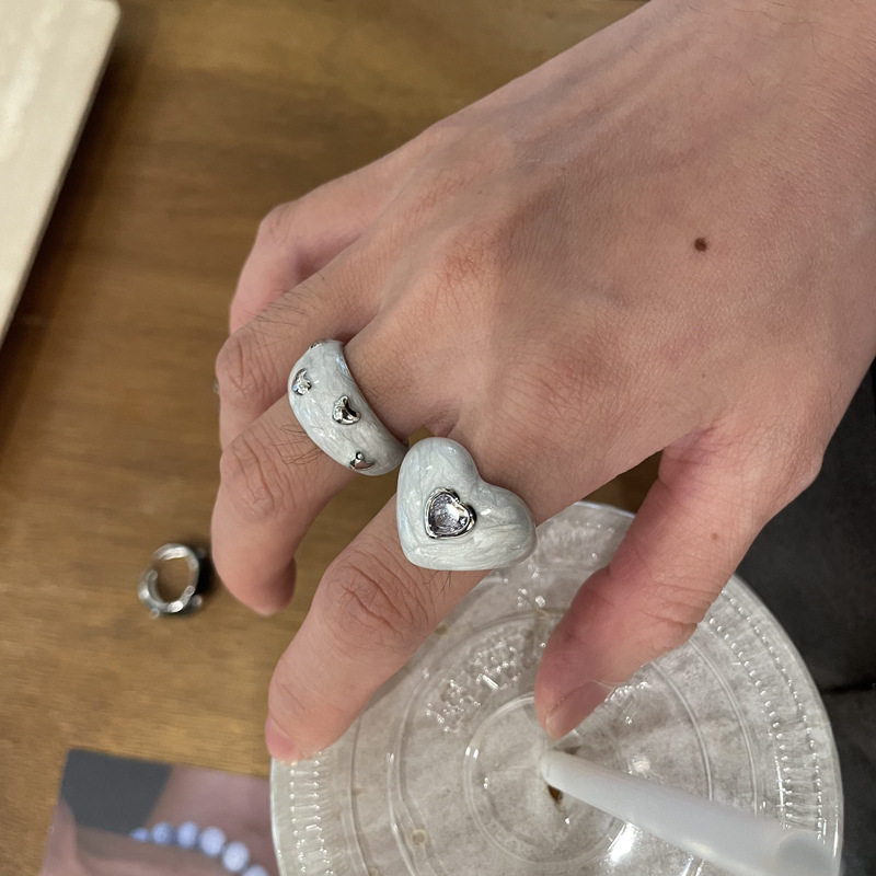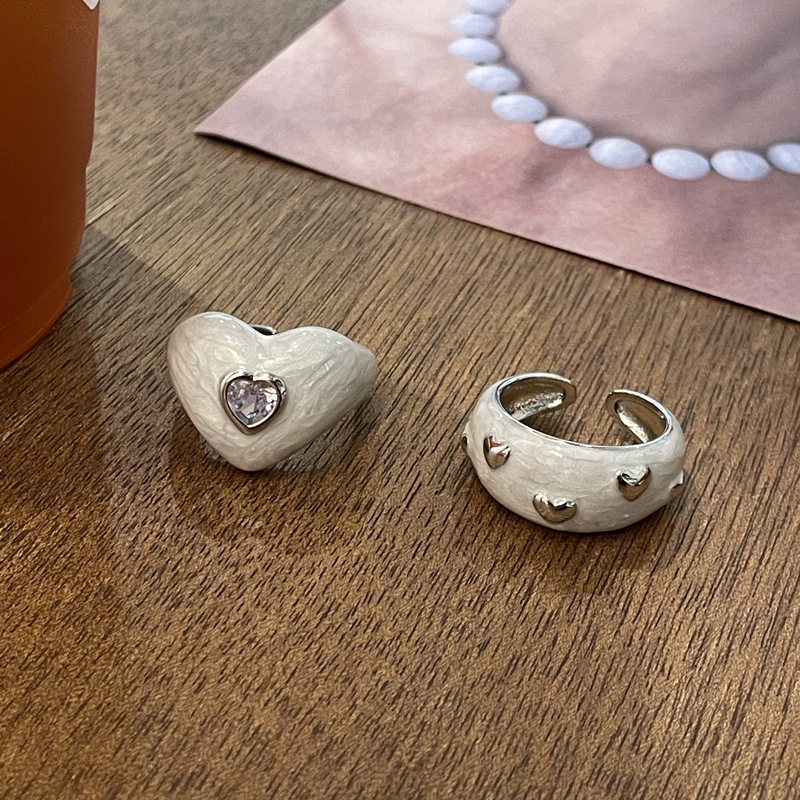 韩国博主同款滴釉戒指爱心黑色珠光白设计感可爱锆石镶嵌食指指戒