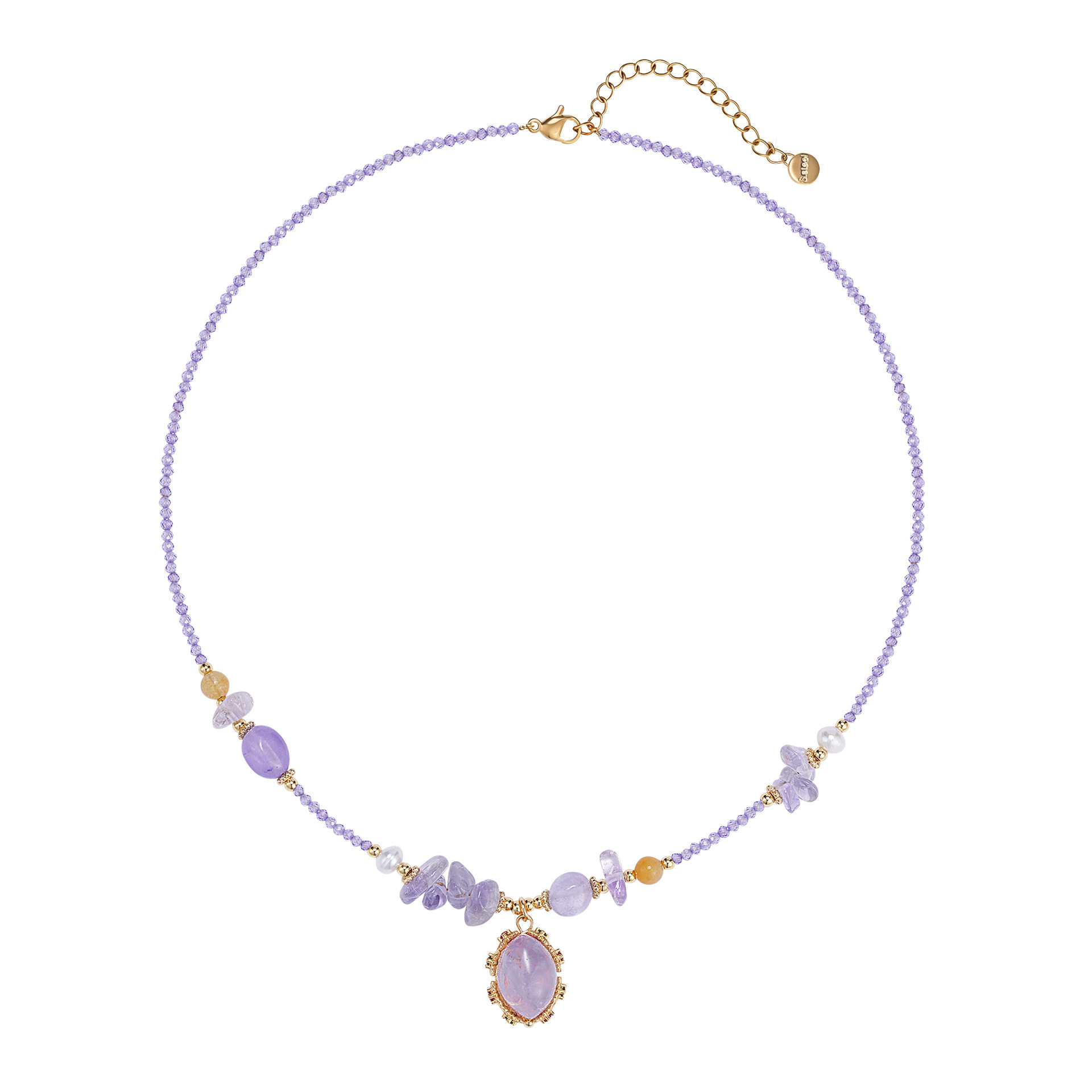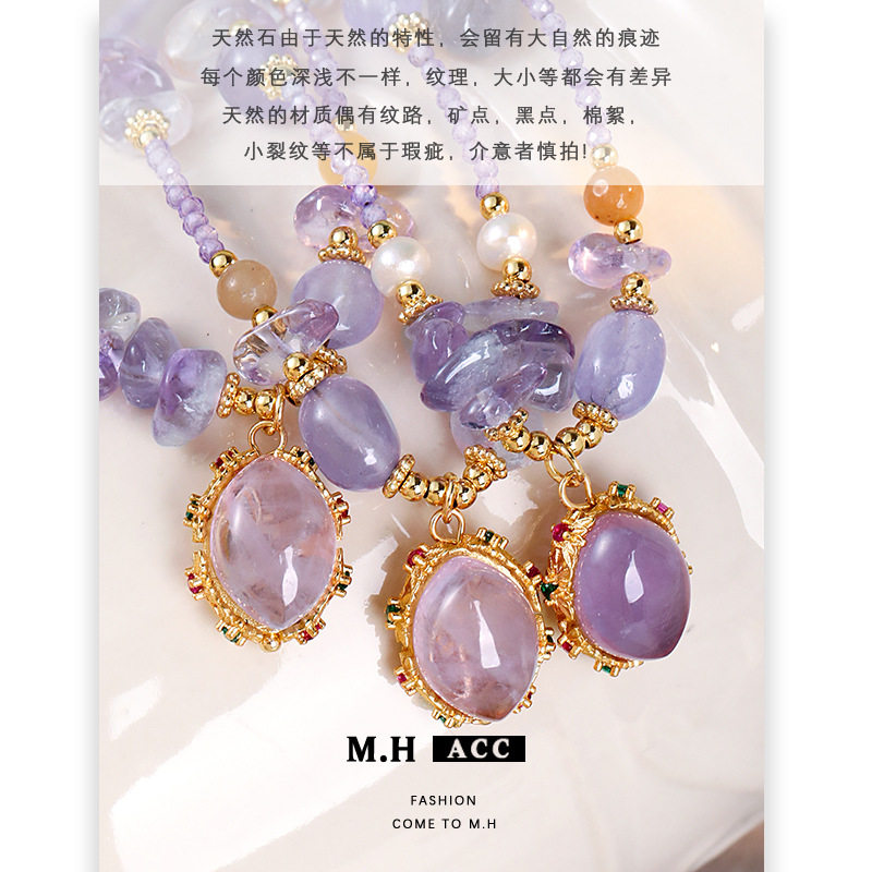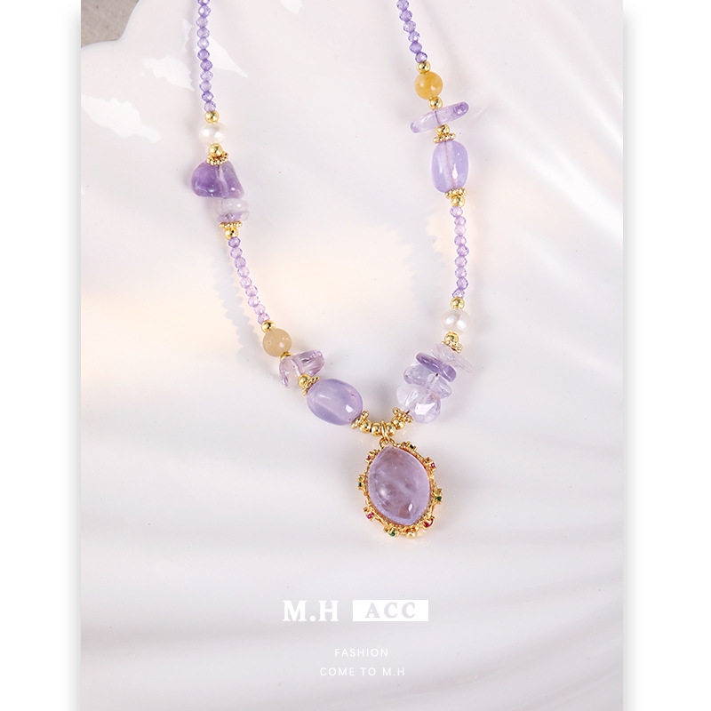 夏季新款小清新紫色串珠项链女时尚小众高级感水晶锁骨链百搭颈链