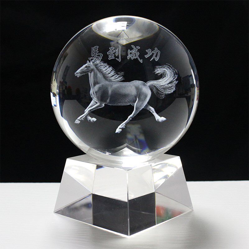 水晶球内雕3D船一帆风顺家居饰品摆件乔迁送礼可定制图案logo