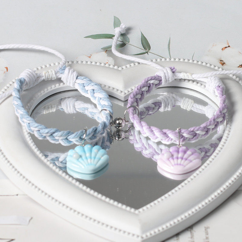 原创炫彩珍珠贝壳编织情侣磁吸手链高颜值闺蜜手绳送男朋友小礼物
