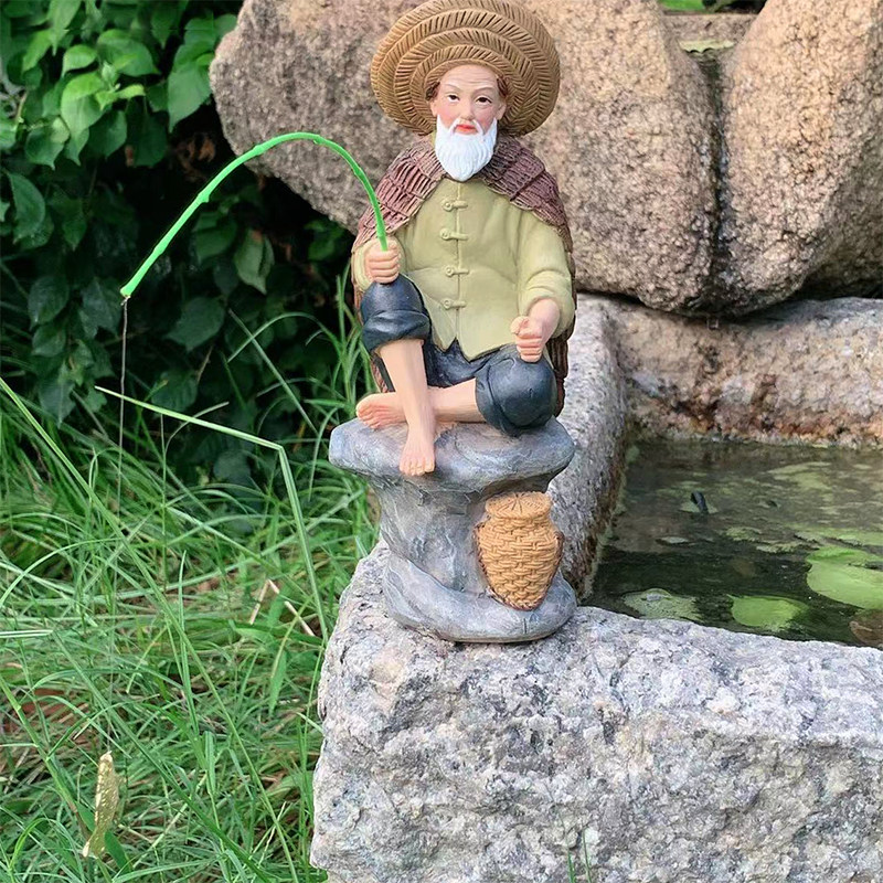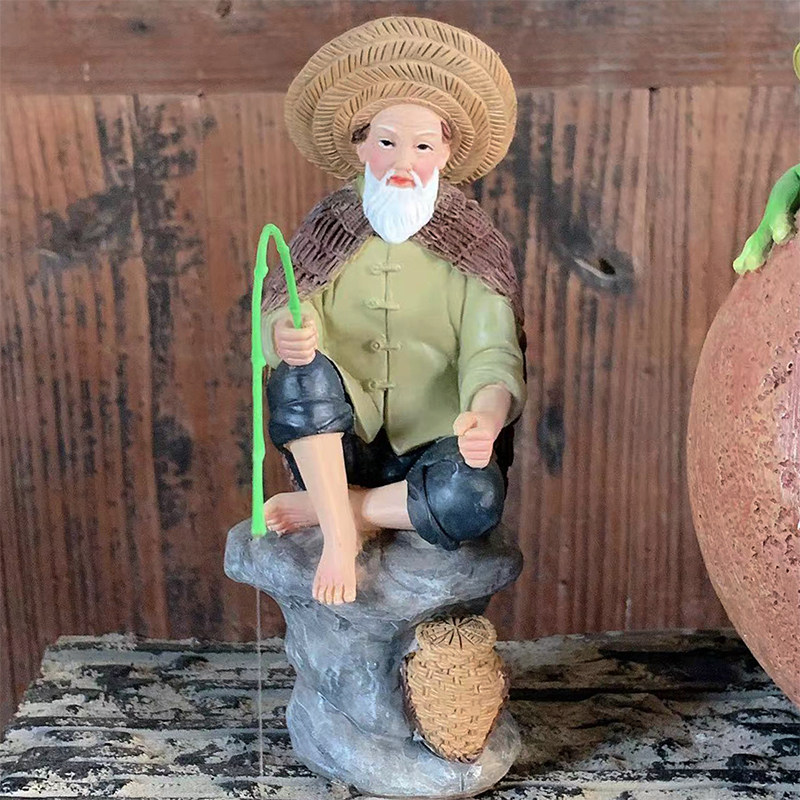 姜太公钓鱼摆件鱼缸鱼池水塘造景饰品橱窗玄关办公桌茶宠树脂艺品