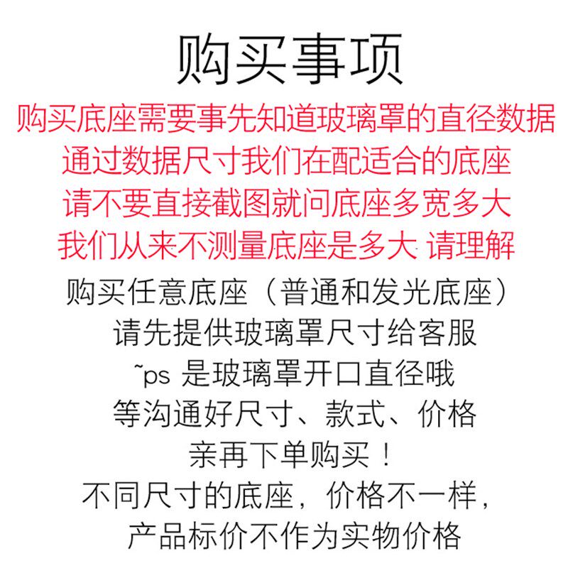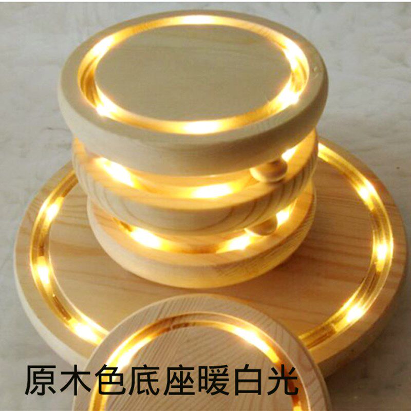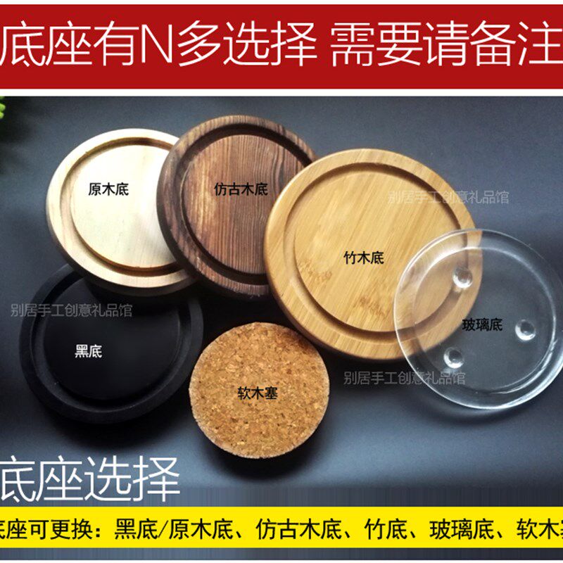 直销玻璃罩底座配件竹底黑色原木玻璃底松木底盘发光灯串摆件底座