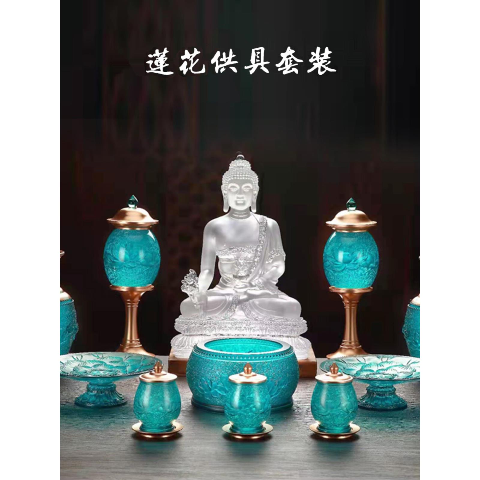 琉璃莲花佛像工具集装饰品家庭客厅佛堂寺庙桌面显示拜佛像用品