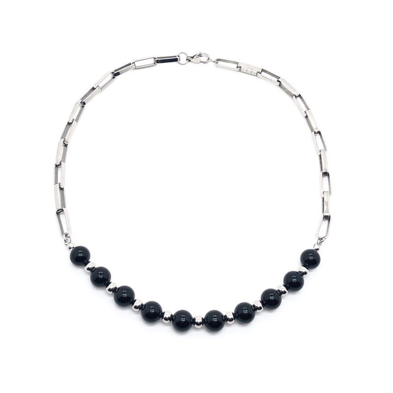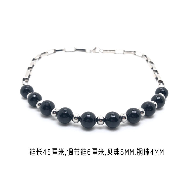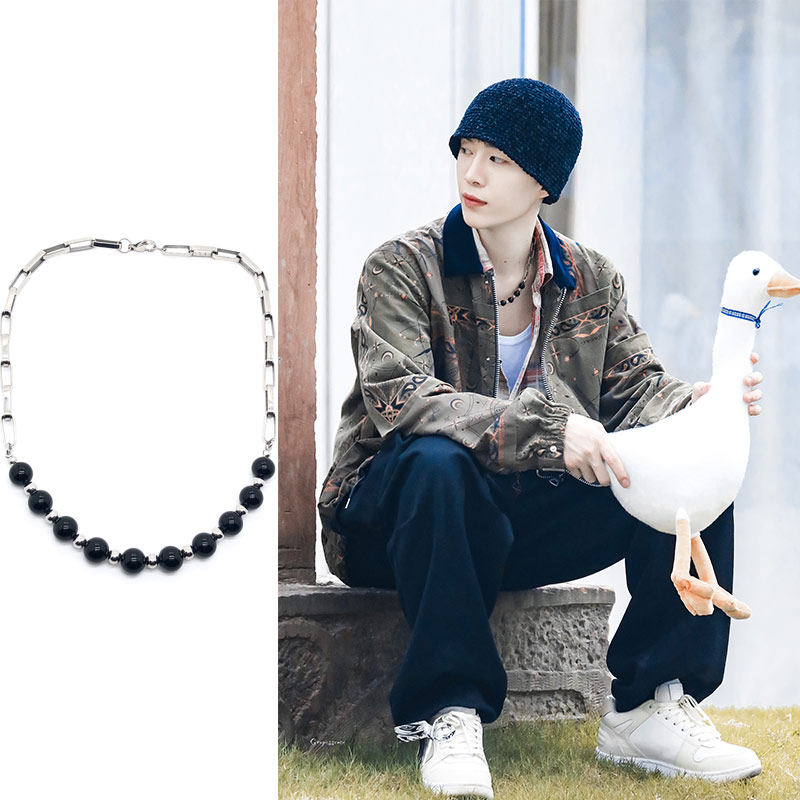 潮流合伙人2范丞丞同款黑色贝壳珠钛钢拼接项链百搭国潮酷女锁骨A