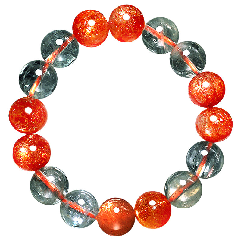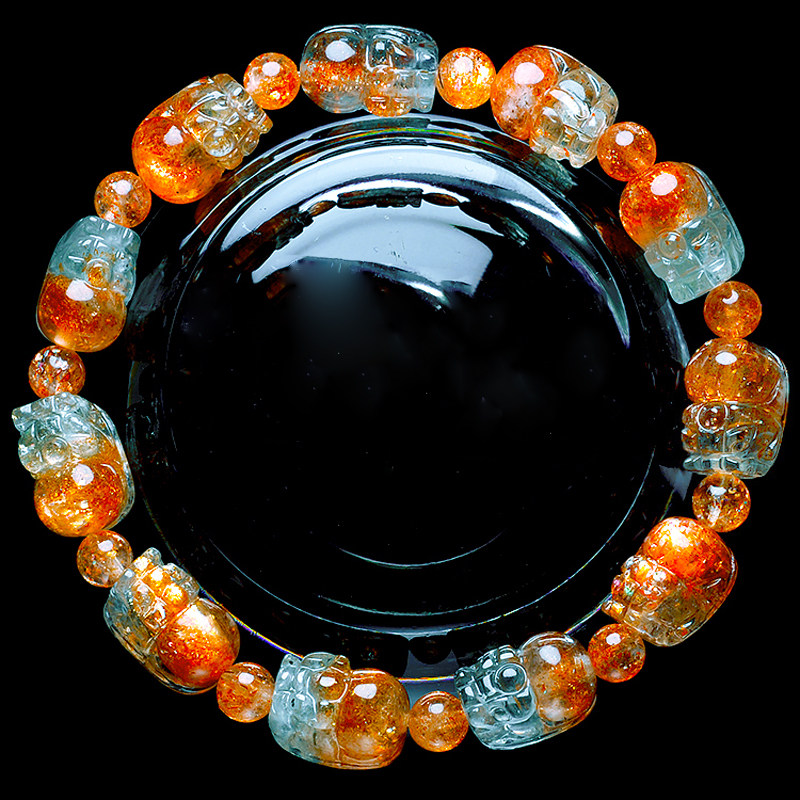 天然阿鲁沙西瓜貔貅手链女彩色坦桑尼亚金太阳长石手串日光石单圈