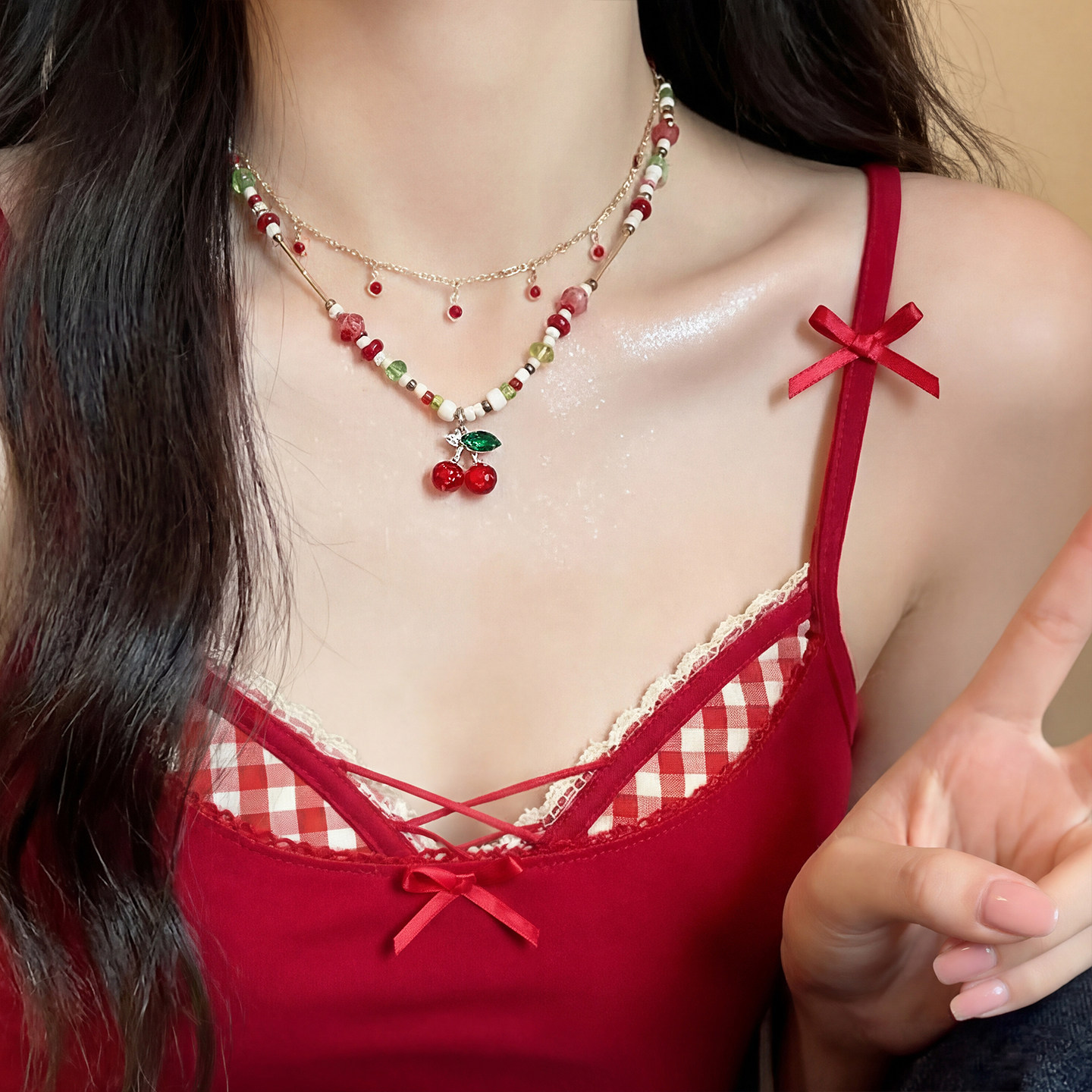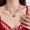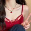 甜美红色樱桃串珠叠戴项链高级感女款气质设计感配饰精致锁骨链