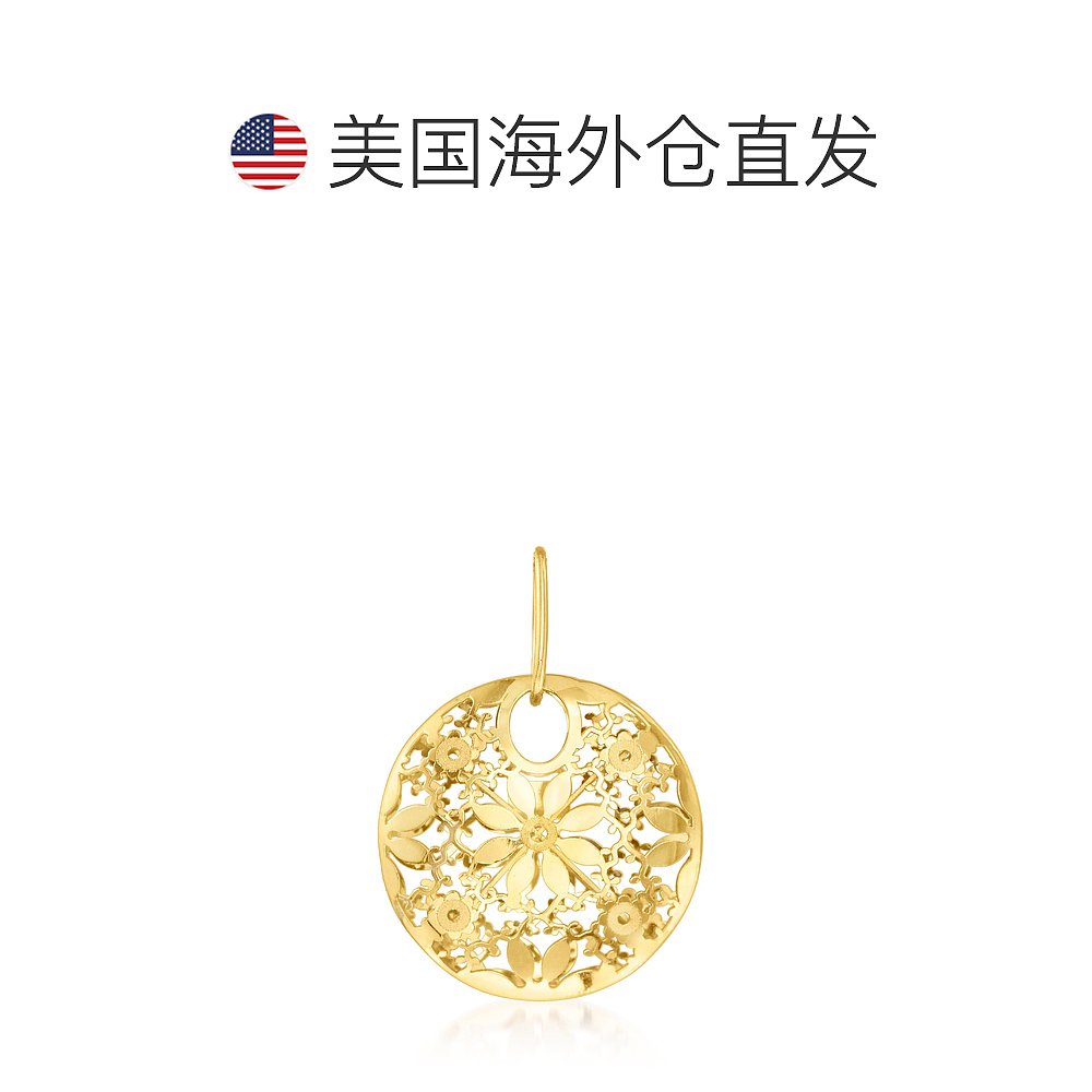 自营 Ross-Simons 意大利 14kt 黄金圆形花朵吊坠 - 黄色 美国奥