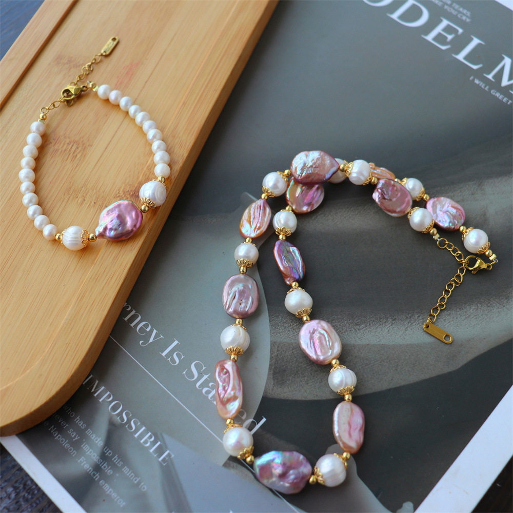 天然珍珠手链项链高级感淡水紫色巴洛克手串设计感复古饰品批发