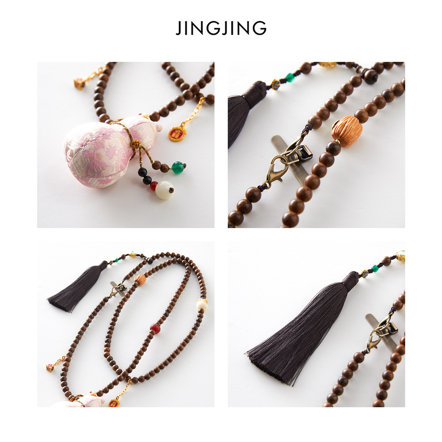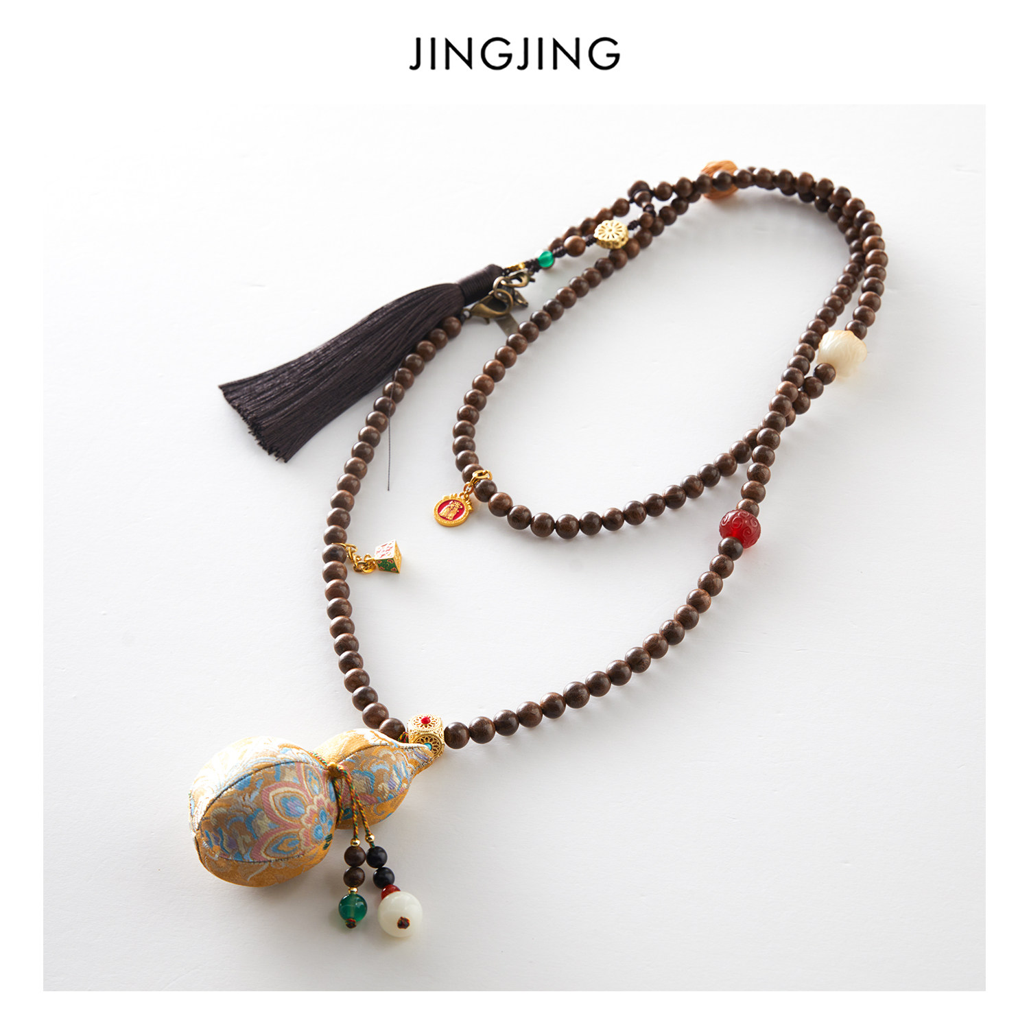 JINGJING"楠心守禄"新中式木质项链流苏吊坠斜跨链葫芦古风配饰
