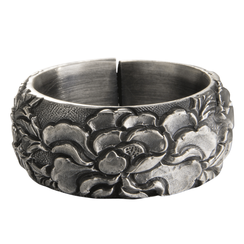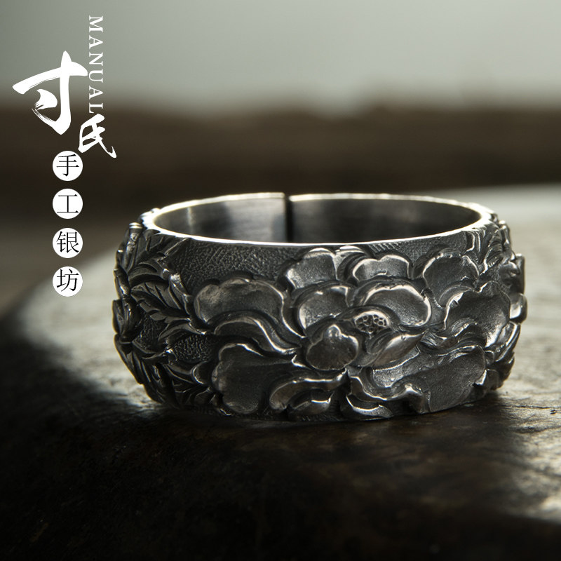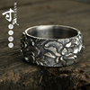 纯银戒指S999足银男女情侣定制牡丹花戒指对戒云南手工银戒子