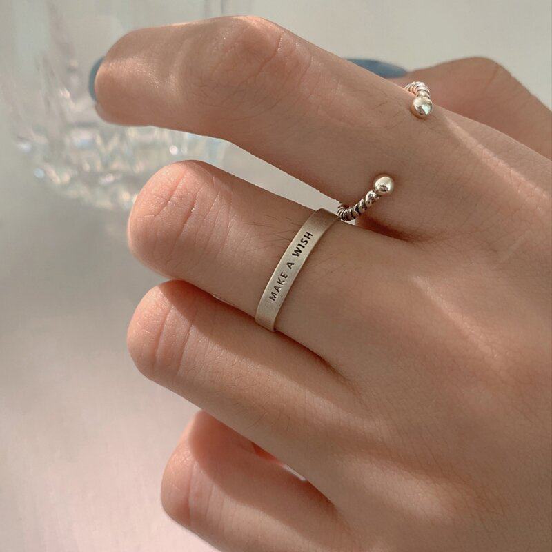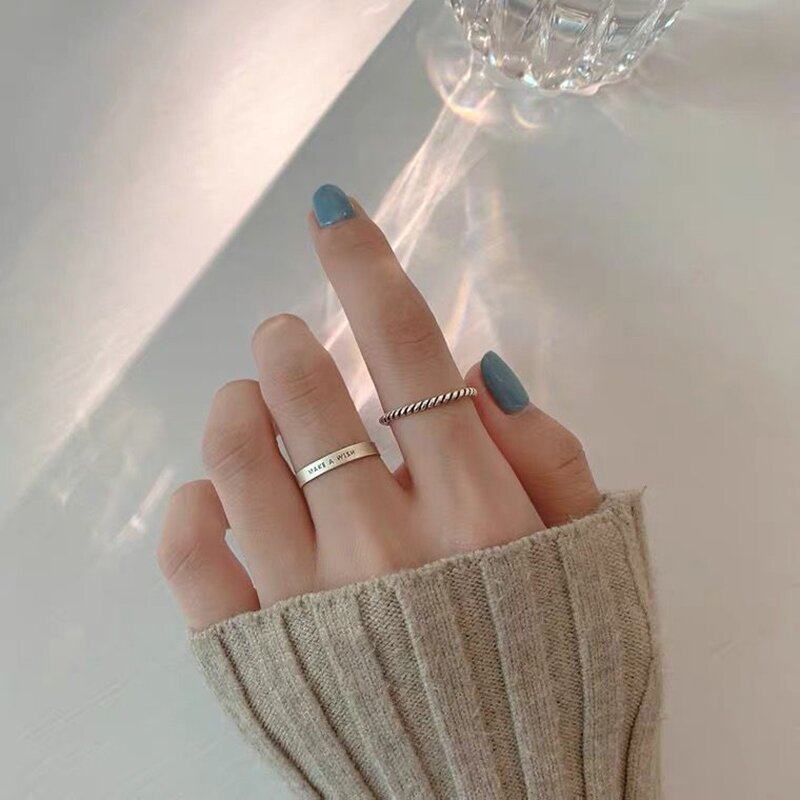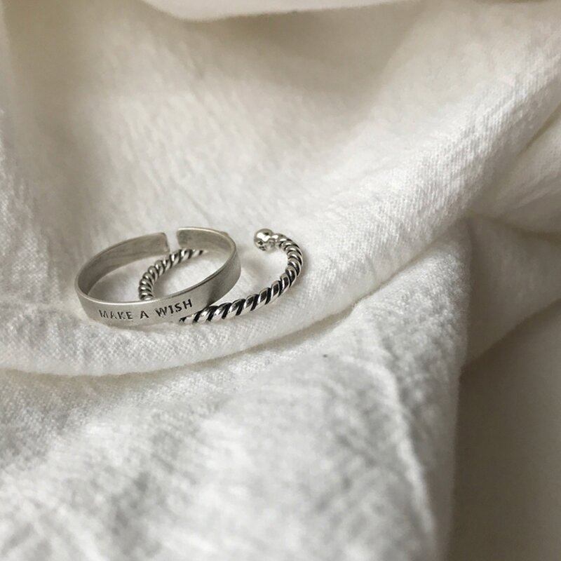 麻花开口戒指女新款潮简约时尚个性小众设计质感复古磨砂字母指环