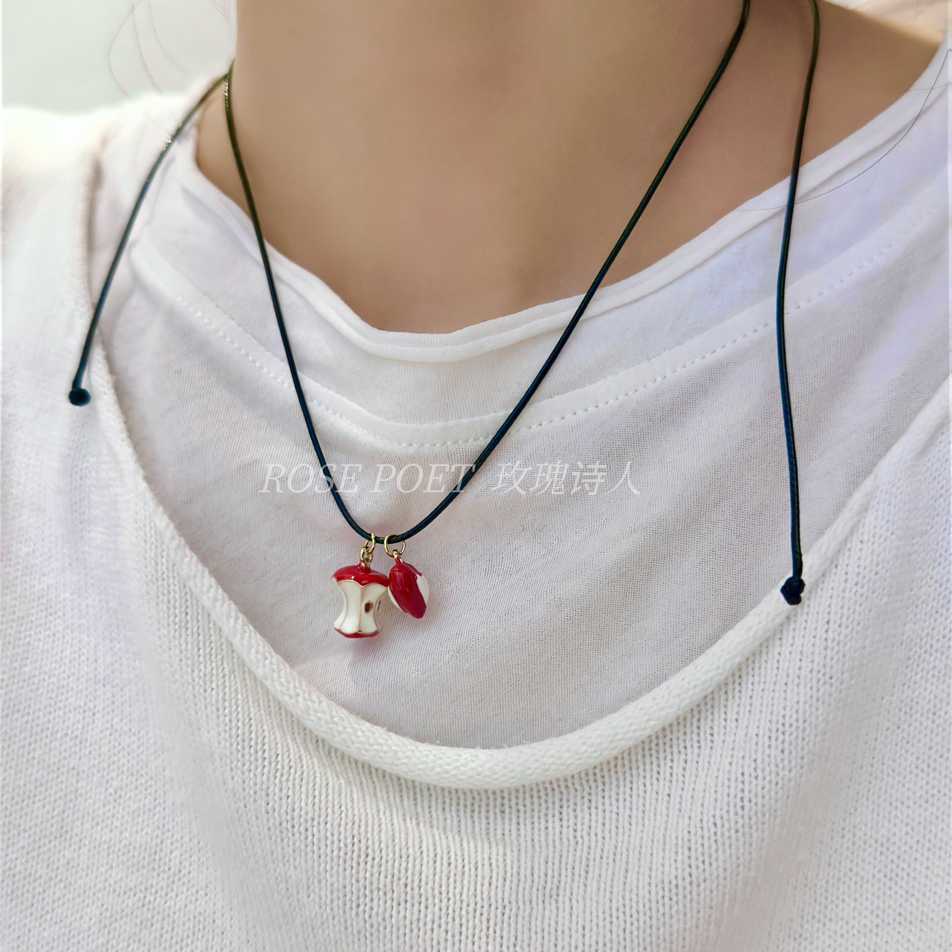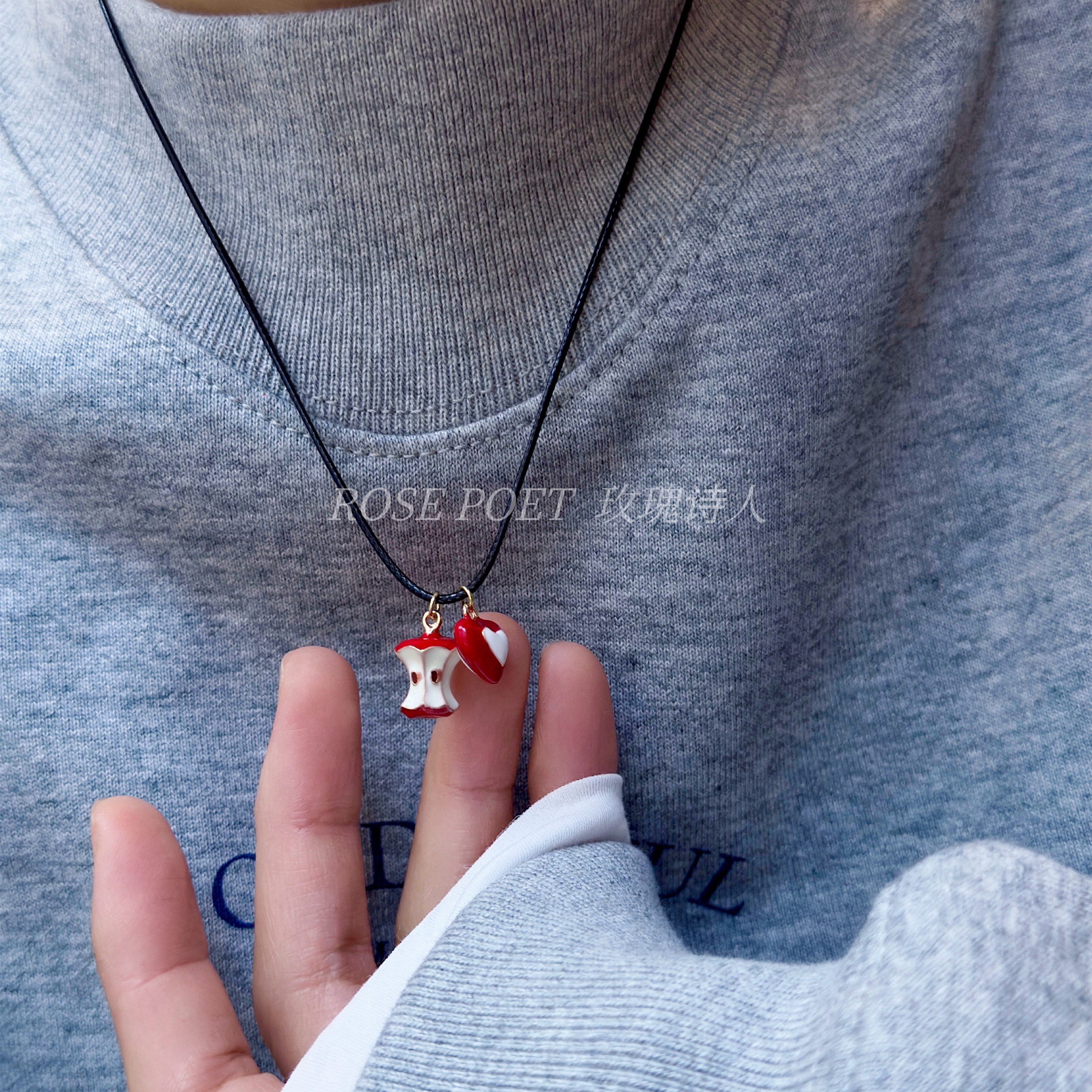 玫瑰诗人「红苹果剧场」秋冬红色爱心苹果项链可爱少女吊坠毛衣链
