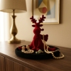 红色圣诞麋鹿装饰摆件绒面桌面收纳盒节日装饰品
