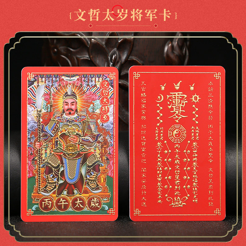 2026马年本命年太岁卡丙午年马鼠牛兔文哲大将军鎏金随身平安卡